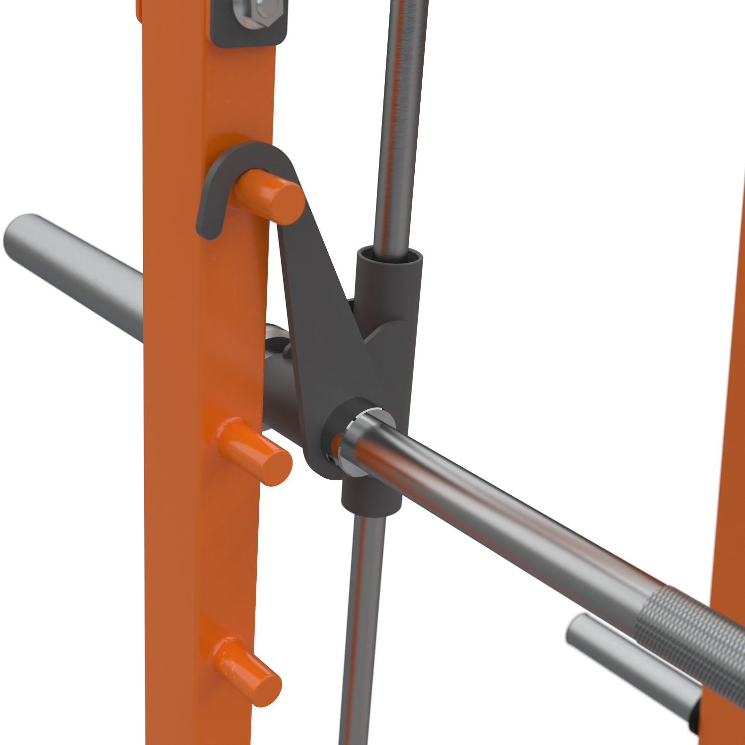 Дополнительные J-образные крюки помогут удобно разместить штангу на нужной высоте, позволяя атлетам безопасно выполнять жимы, приседания и тяги без страховщика.