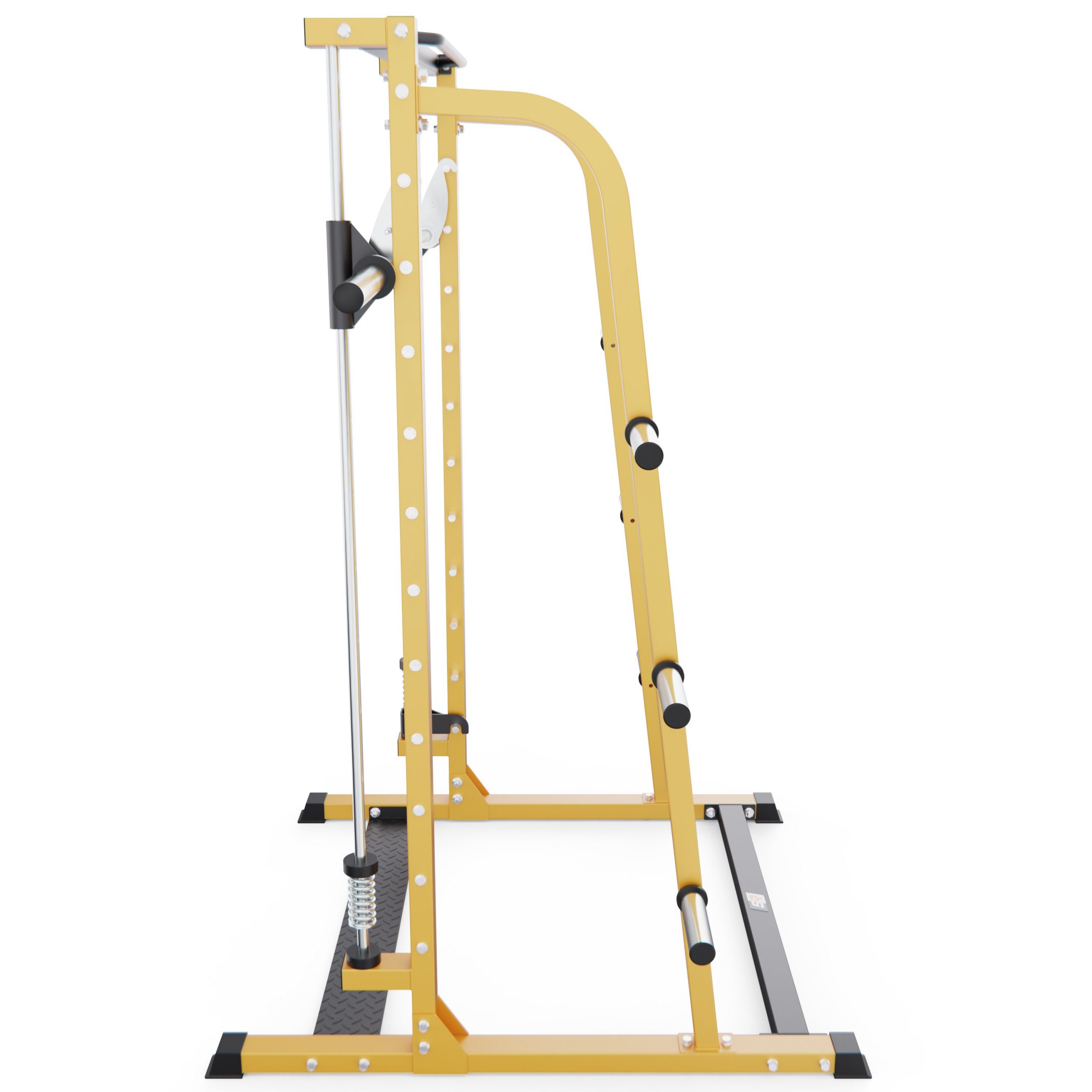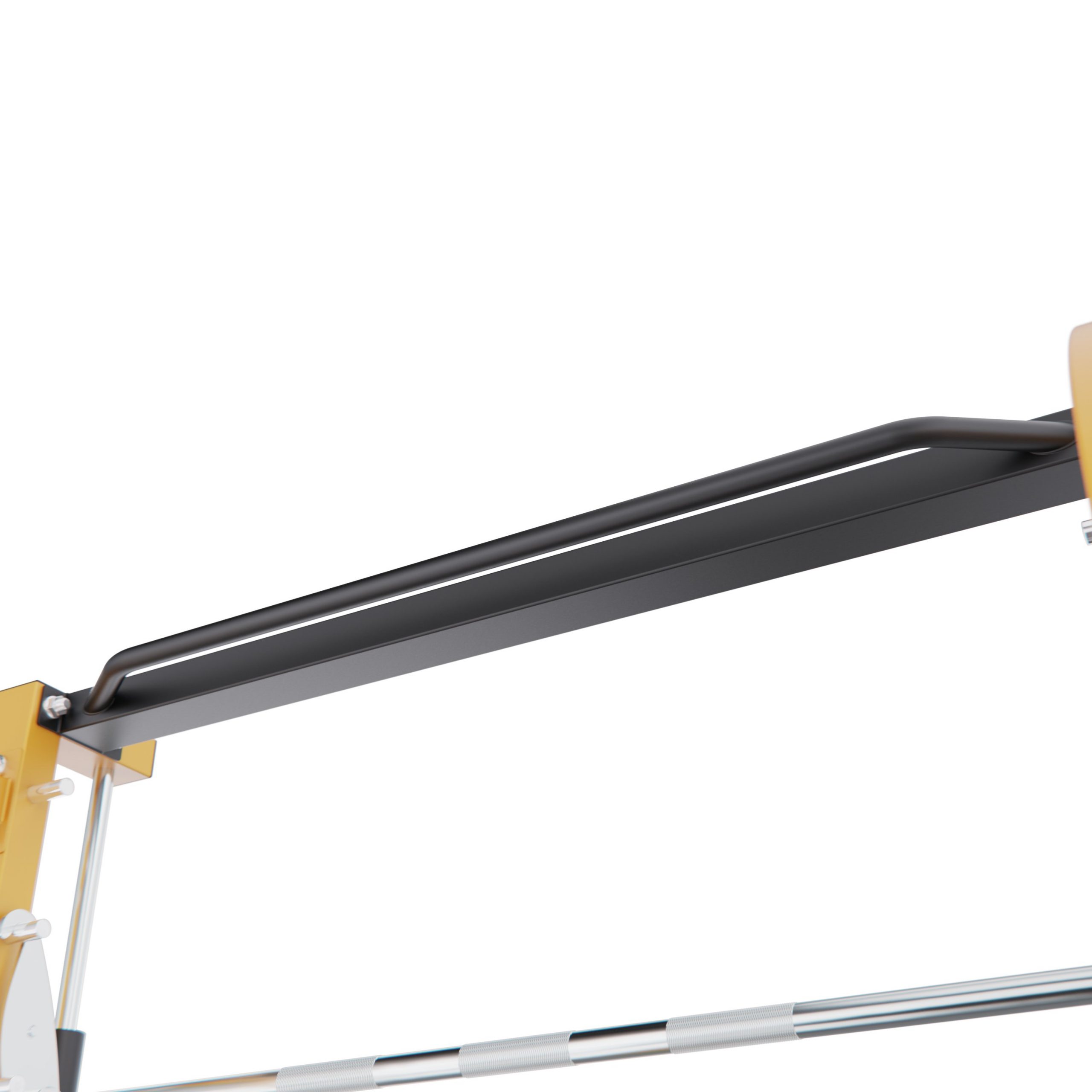 Тренажер имеет 9 уровней регулировки по высоте, что позволяет гибко настраивать рабочее положение под разные упражнения и рост спортсмена. Для дополнительных тренировок предусмотрен турник длиной 88 см с максимальной нагрузкой до 200 кг.