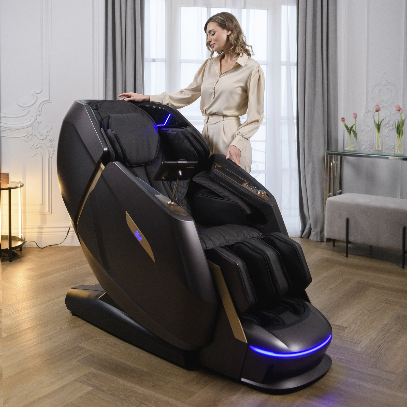 Кресло оснащено инновационной системой двойной каретки DualGleit с 4D-механизмом, которая обеспечивает глубокий и точечный массаж. Ультра длинная WSL траектория 140 см идеально повторяет изгибы позвоночника, а 8 роликов в спине и 6 массажных блоков в стопах охватывают все ключевые зоны тела, гарантируя комплексное воздействие.