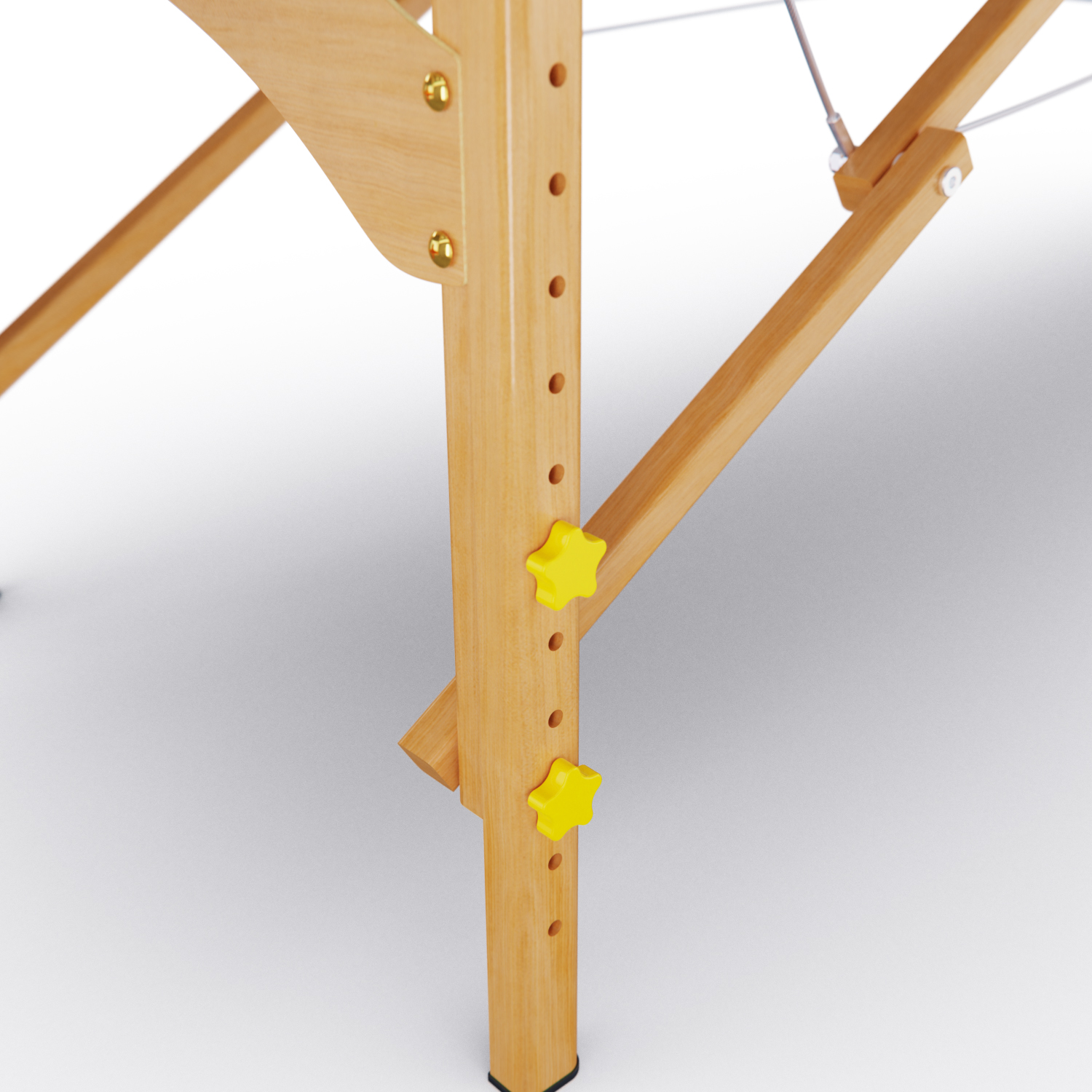 Благодаря применению бука в конструкции рамы вес стола существенно облегчен и составляет 13 кг. Имеет складную конструкцию. Удобен для хранения и транспортировки. В комплект входит сумка-чехол для переноски.