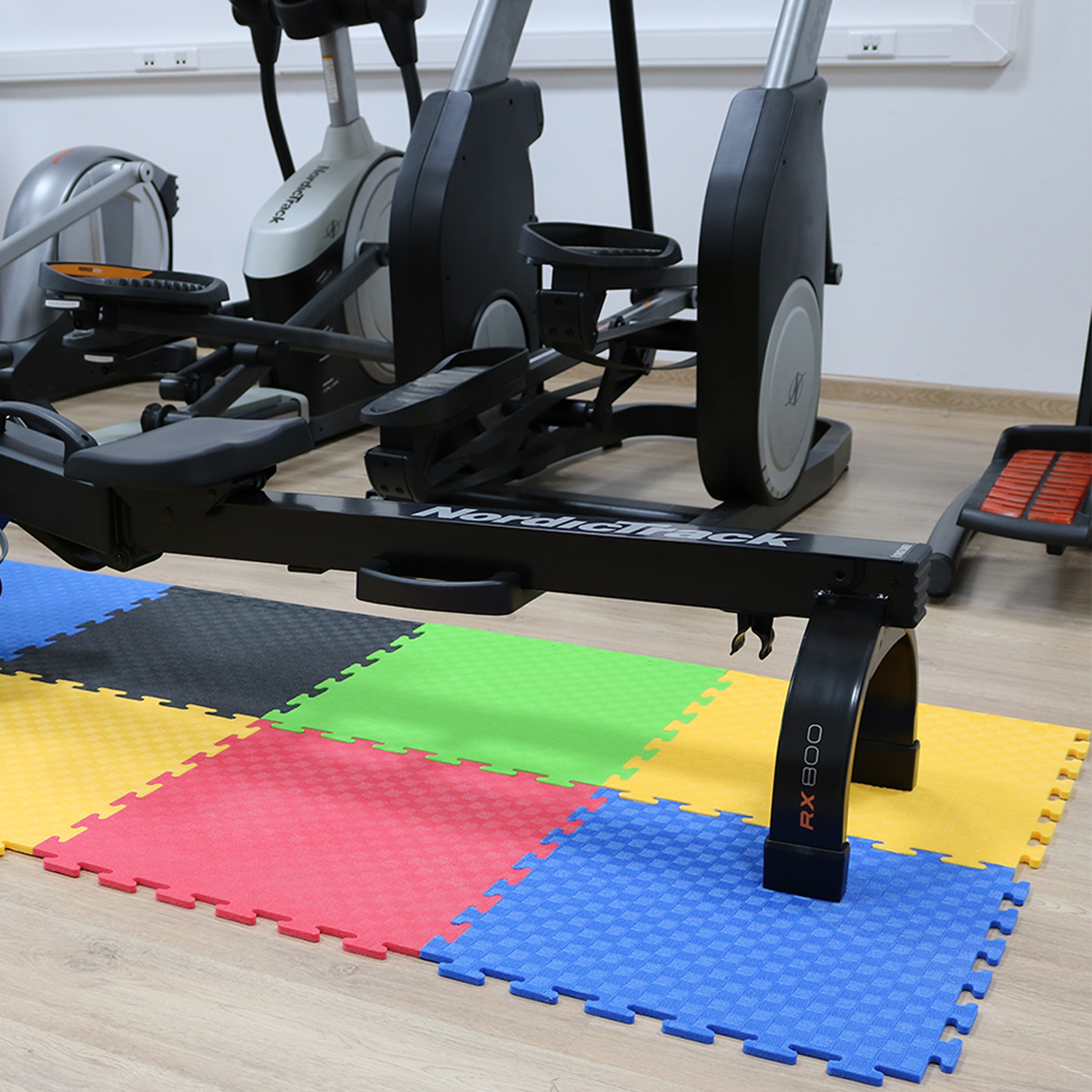 Мат — пазл будет отличной защитой вашего напольного покрытия от различных повреждений, которые могут возникнуть при использовании тренажеров. Так же мат обладает шумопоглощающим эффектом, создавая наилучшие условия для тренировки. Материал, из которого изготовлен мат — сшитый пенополиэтилен плотностью 100 кг/м3, а толщина мата — 8 мм.