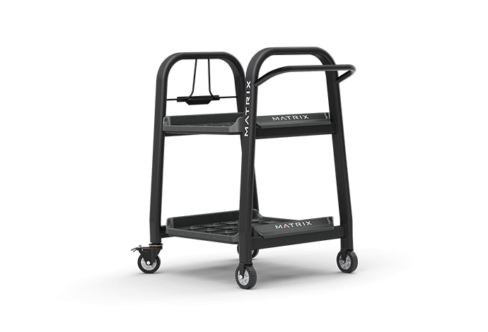 Храните все используемые аксессуары для тренировки в одном месте — на передвижной стойке с двумя полками.