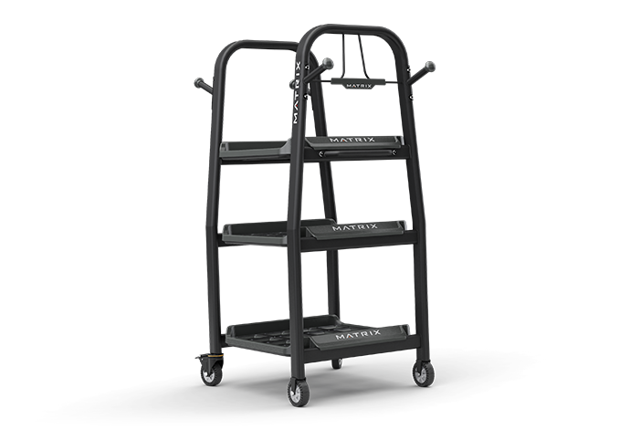 Храните все используемые аксессуары для тренировки в одном месте — на передвижной стойке с тремя полками.
