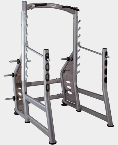 Профессиональная силовая станция устойчивой конструкции. Регулируемая высота верхней страховочной перегородки — от 77 см до 122 см. Нижняя страховочная перегородка на высоте 50 см. Турник. Встроенные подставки под диски. Большой вес конструкции гарантирует устойчивость.
