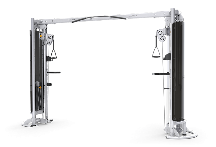 Профессиональный блочный кроссовер. Упоры для выполнения махов ногами. Регулируемая по высоте тяга. Турник (прямой и параллельный хват). 18 уровней регулировки высоты тяг. Два весовых стека. Вес каждого стека 91 кг.