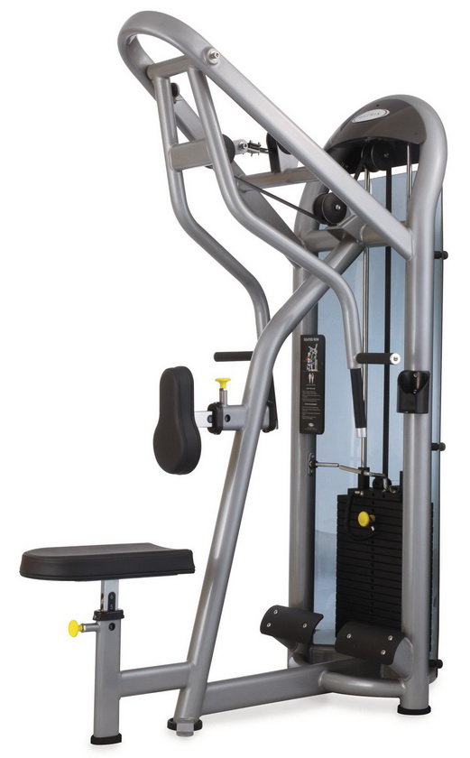 Профессиональный тренажер. Два различных варианта хвата. Настройка упора груди. Регулировка высоты сиденья. Биомеханически верная траектория движения. Защита весового стека акриловым щитом.
