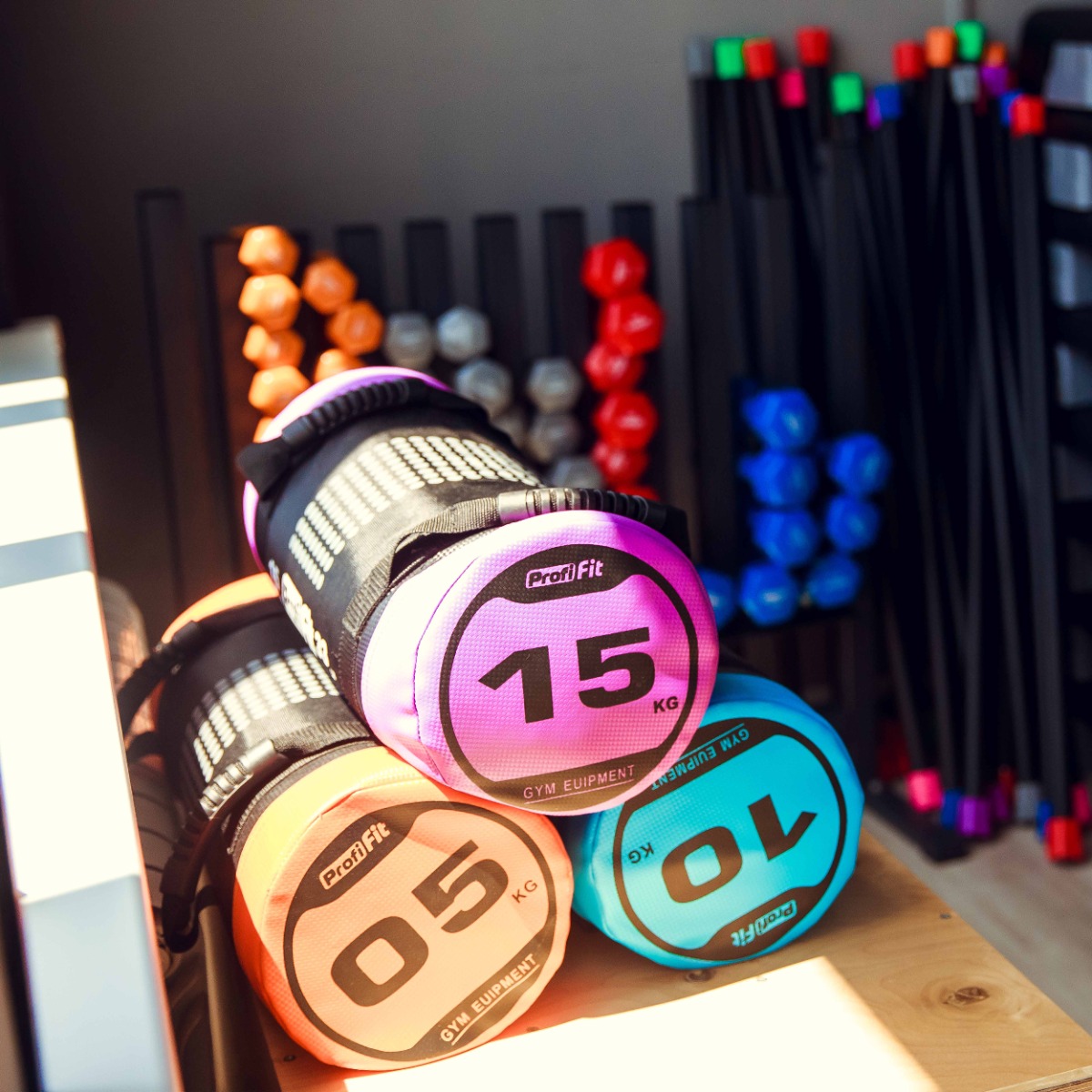 Спортивный снаряд в виде сумки, имеющий несколько вариантов ручек, позволяющих бросать, носить, поворачивать, скручивать или толкать его