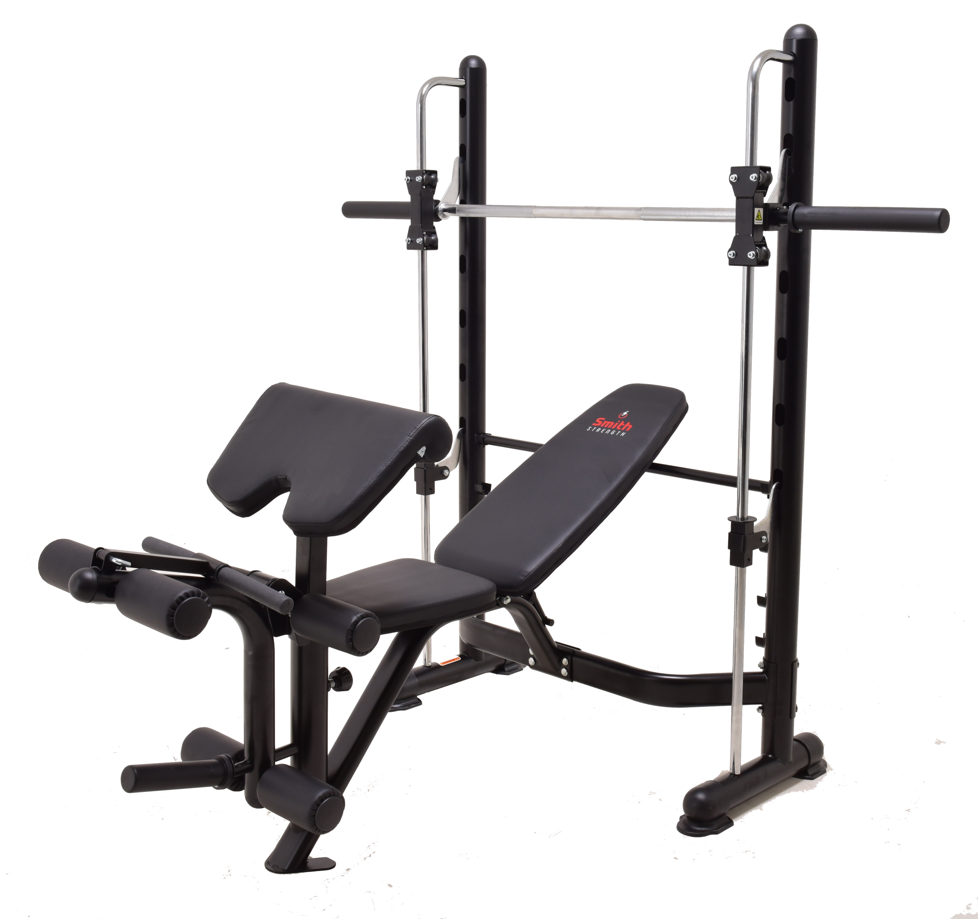 Многофункциональная скамья Smith Strength WB570 со встроенной машиной Смита предназначена для эффективных тренировок в безопасном режиме. Наклон спинки регулируется в широком диапазоне и предлагает жим лежа как на прямой скамье, так и с положительным и отрицательным углами наклона. Направляющие машины Смита обеспечивают плавное контролируемое скольжение грифа. Блокировка грифа происходит благодаря легкому повороту, а направляющие имеют множество позиций захвата. Ножной блок предназначен для выполнения упражнений разгибание/сгибание ног.