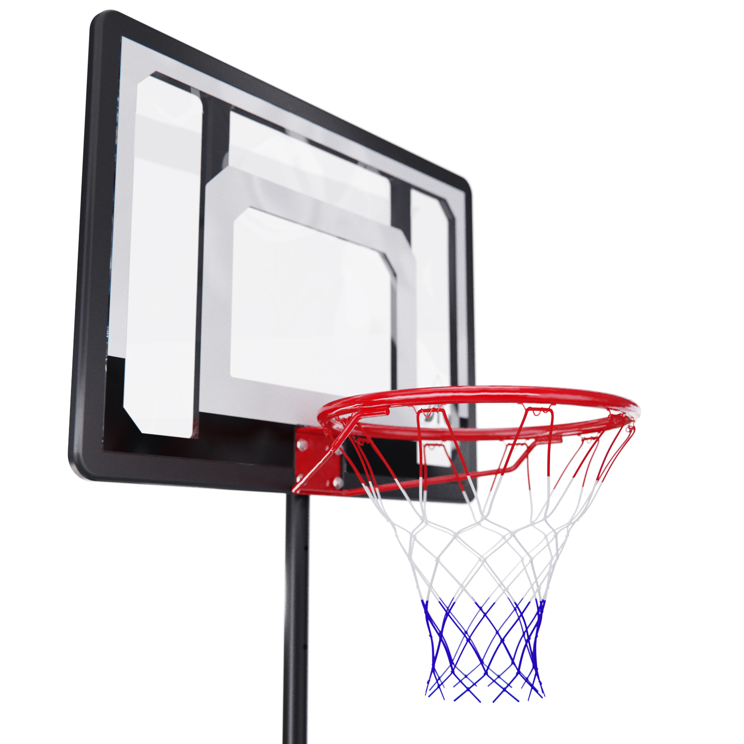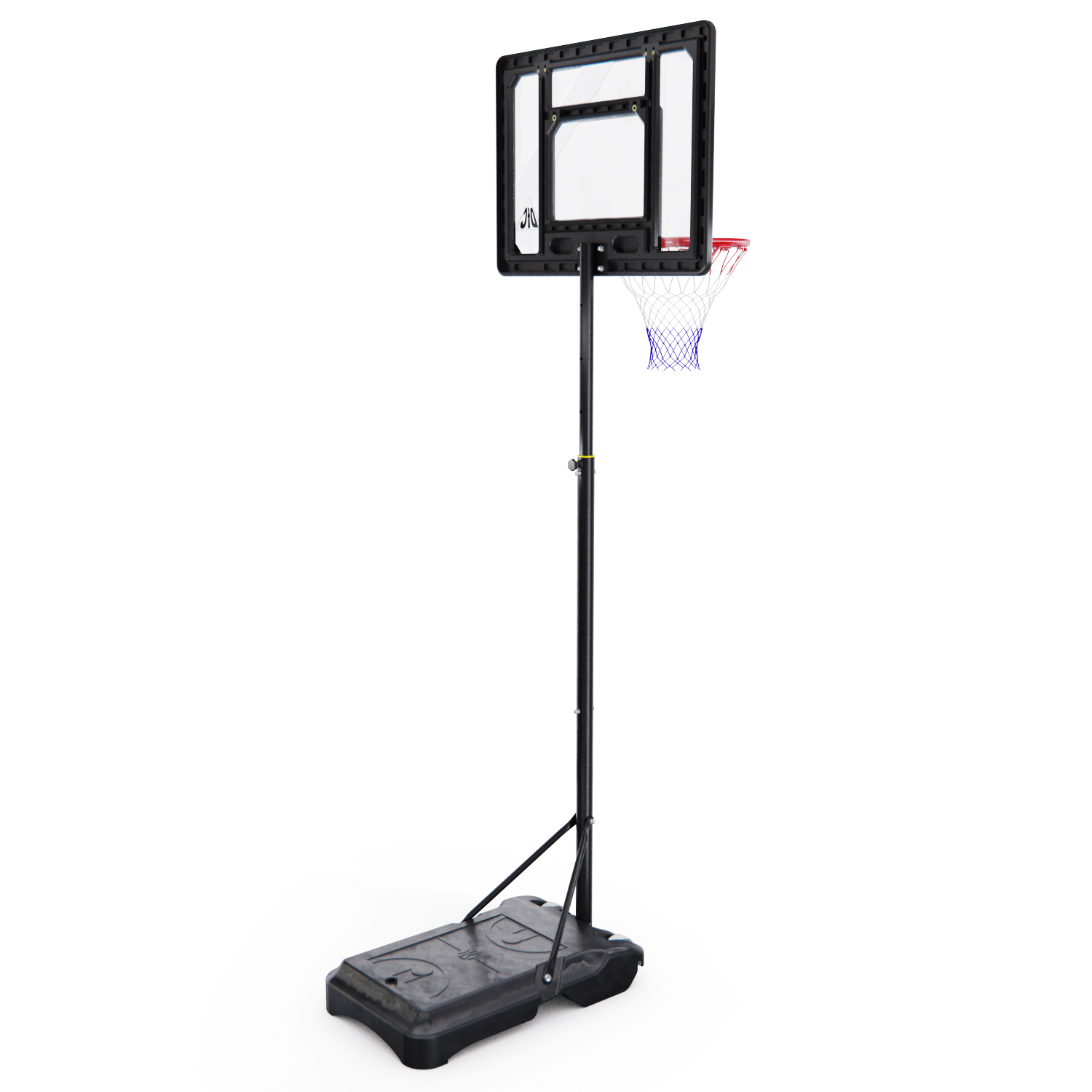 Детская мобильная баскетбольная стойка с щитом из ПВХ. В основание размерами 75 х 45 х 13 см необходимо залить воду или засыпать песок объёмом 0,043 м 3 (43 л).