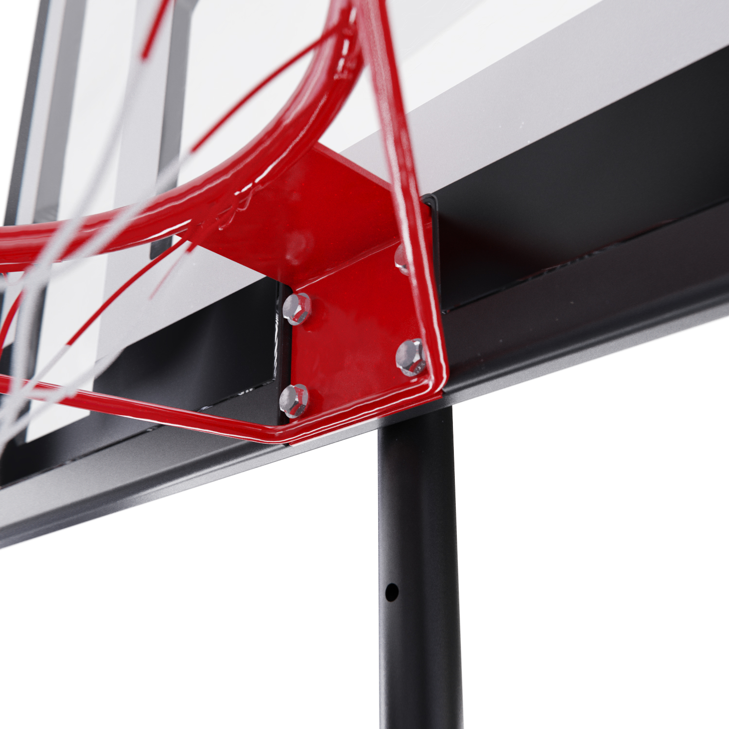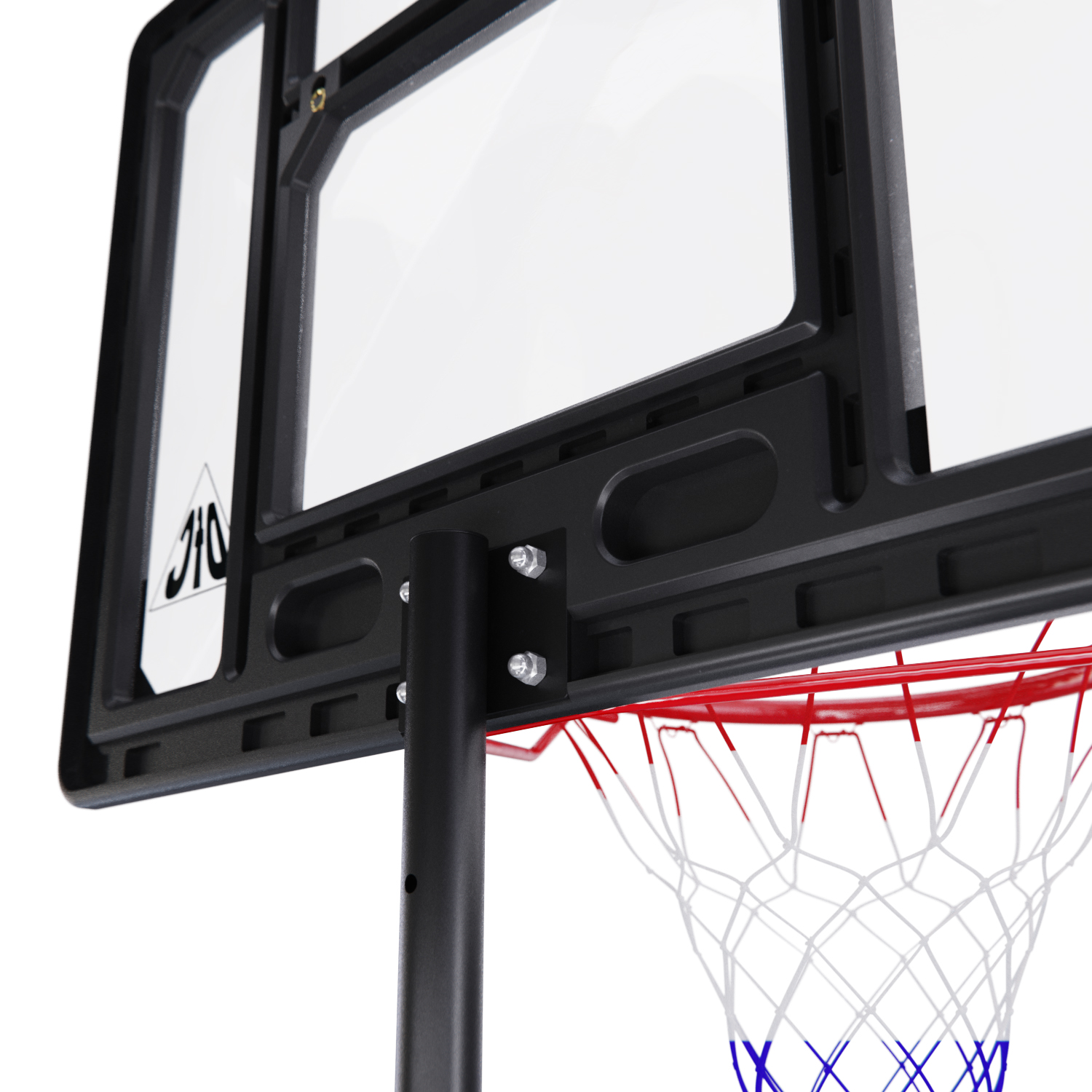 Телескопическая регулировка высоты от 165 до 210 см (по кольцу). Диаметр стойки (трубы, к которой крепится щит и основание) — 4,5 см.