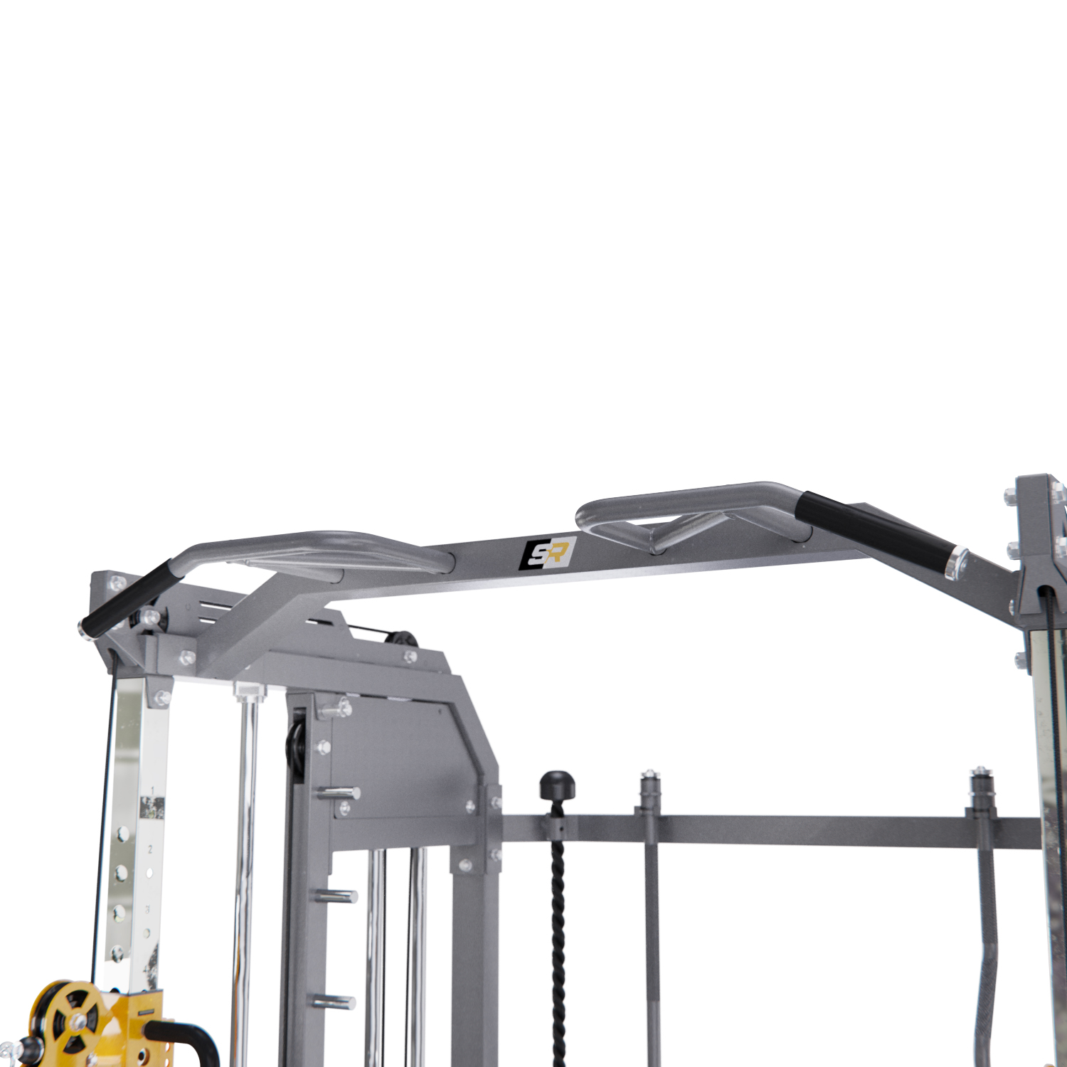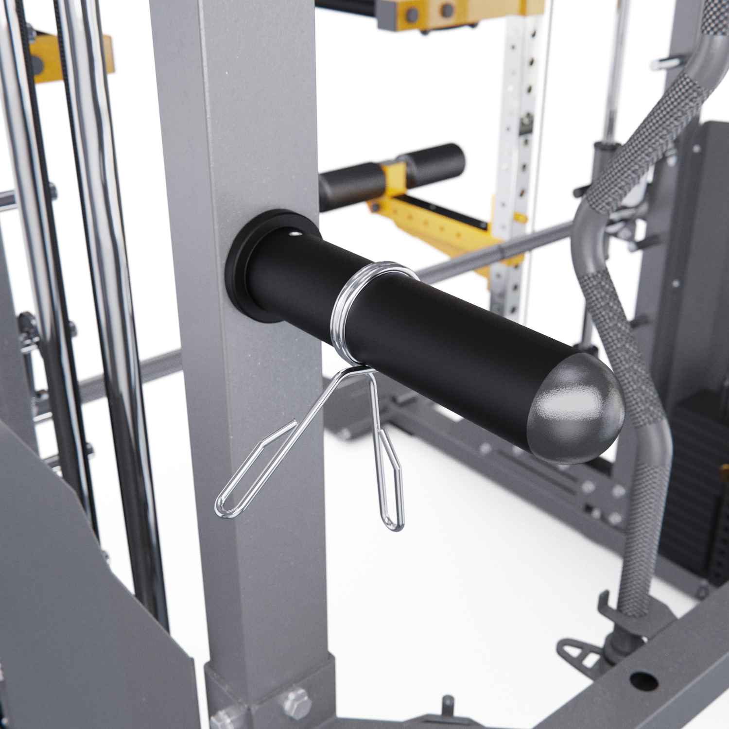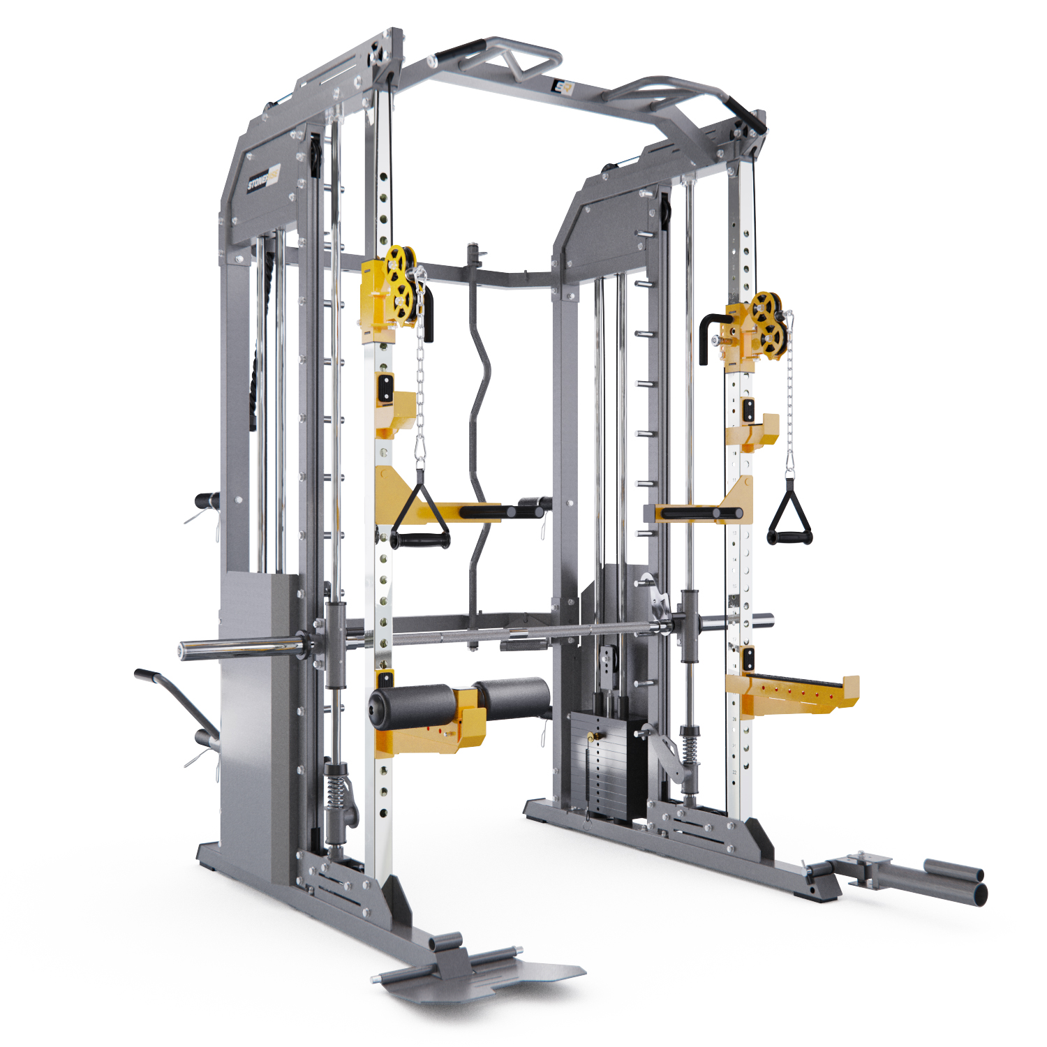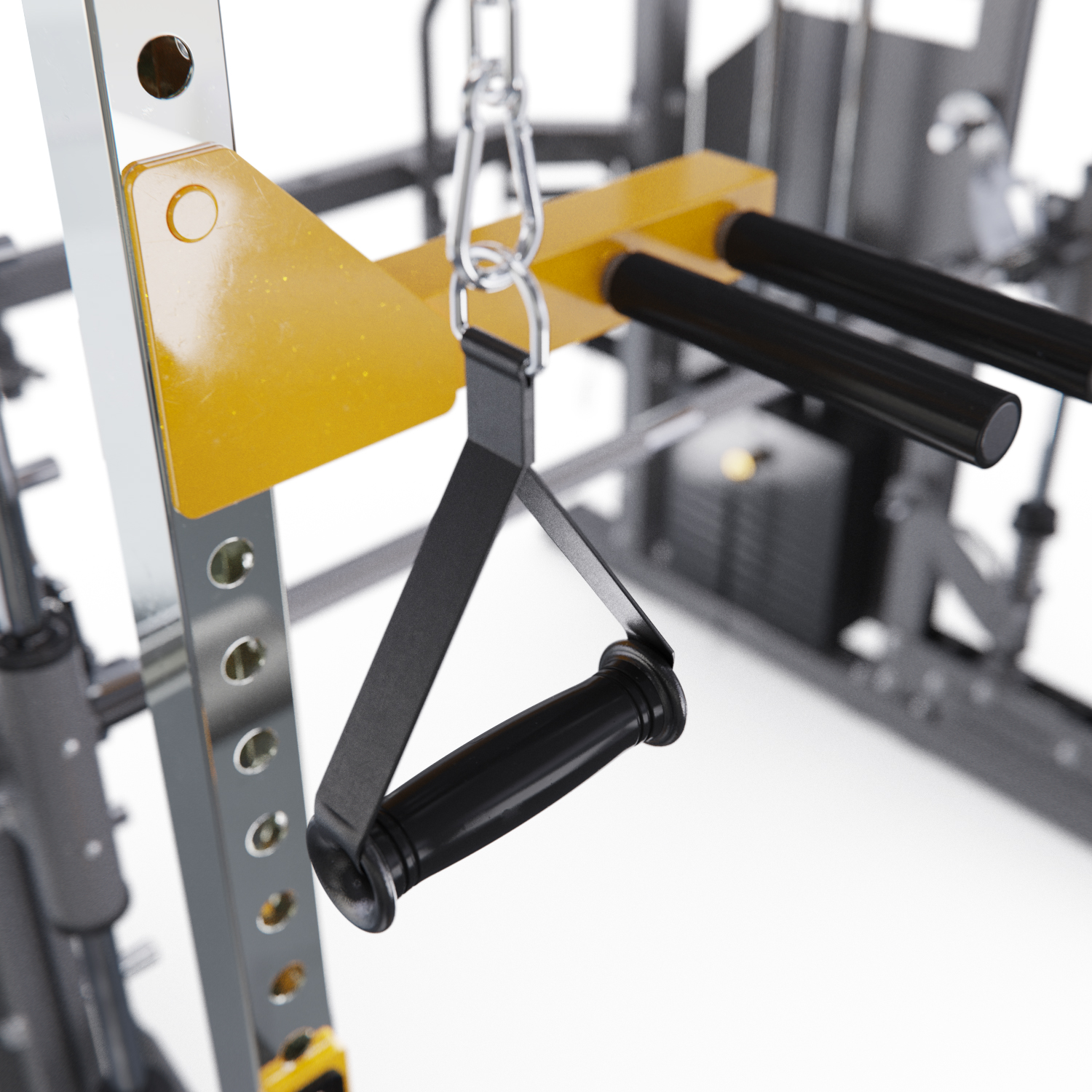 Универсальность: благодаря наличию различных аксессуаров, таких как гриф прямой, турник W-образный, канат для трицепсов, многофункциональные Y-образные рукоятки, перекладина для гребли сидя, турник, ремешок на щиколотку, амортизатор для штанги, Т-образный турник, лэндмайн, нескользящая металлическая платформа для ног и брусья, пользователь может проработать все основные группы мышц своего тела.