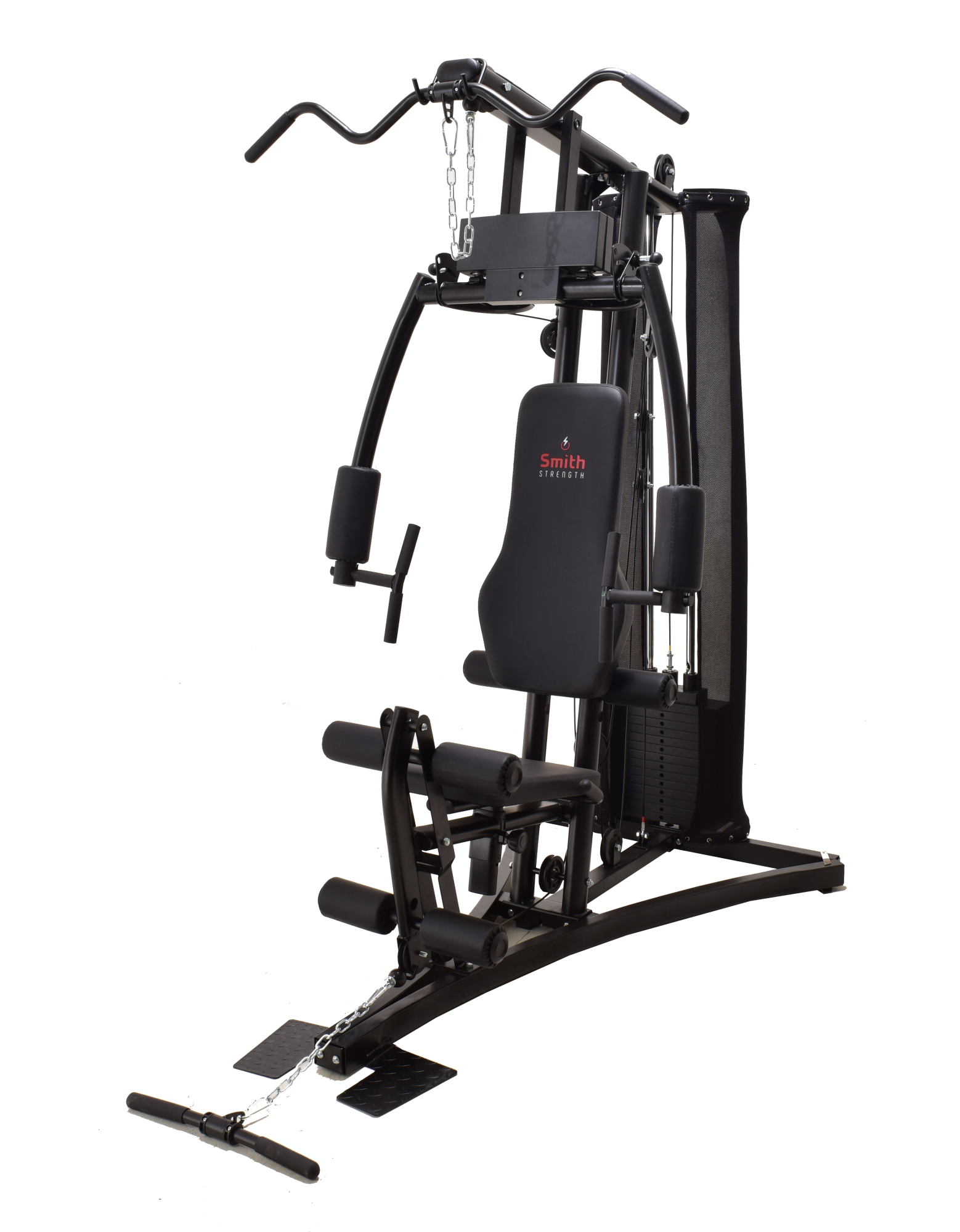 Мультистанция Smith Strength HG850 универсальный тренировочный комплекс для занятий в домашних условиях, который предлагает множество упражнений на все группы мышц. Высокая производительность, эргономичный дизайн и широкая функциональность выделяют данную модель среди аналогов. Мультипозиционный хват рукоятей создает вариативность нагрузки. Сверхпрочная конструкция рамы и качественные материалы обеспечивают высокую надежность и долговечность использования. Весовой стек суммарным весом 90 кг состоит из 15 плит, и имеет защитных кожух. Система роликов имеет передаточный коэффициент нагрузки 1:1,35 что соответствует весу стека 121 кг. Тяговый трос выполнен из стали в нейлоновой оболочке и рассчитан на долгосрочную эксплуатацию в условиях повышенной нагрузки.