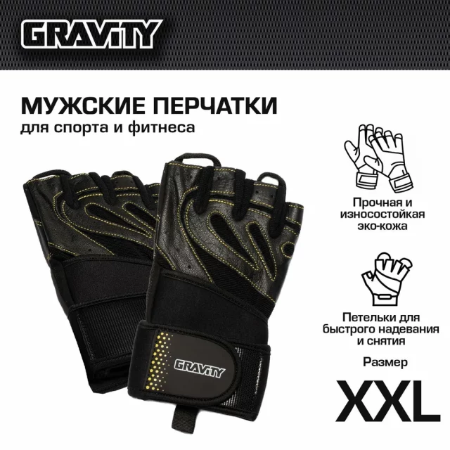 Мужские перчатки для фитнеса Gravity Gel Performer, черные, размер XXL