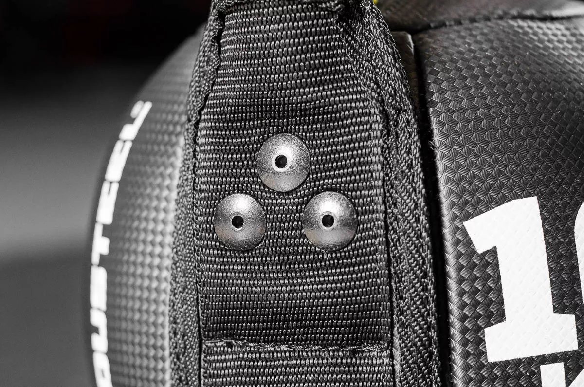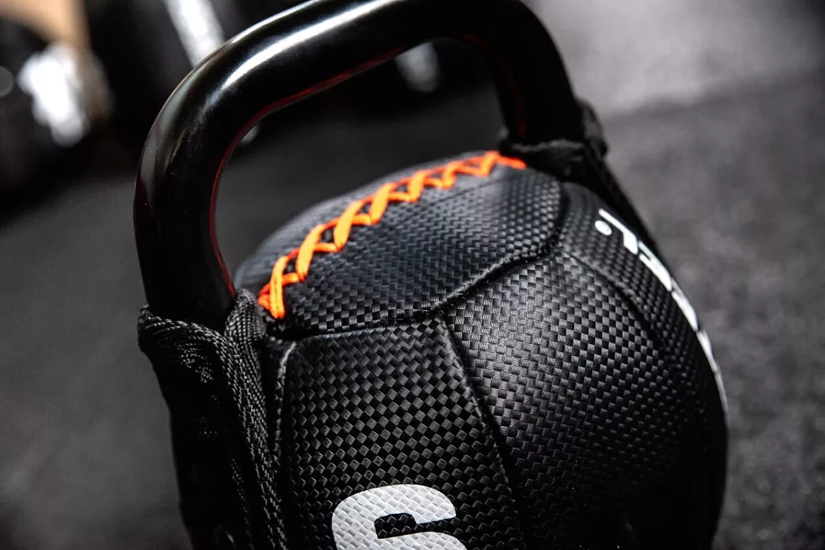 Специальная конструкция мягкого ядра снижает риск травмы, а также позволит отработать сложные движения не боясь падения снаряда на пол. Гири сделаны по принципу медболов. Снаружи обшивка из винила «карбон», внутри утяжелитель, наполненные песком. Чтобы центр тяжести не смещался, вокруг плотно набит уплотнитель. В итоге получаем твердый, но при этом безопасный для помещения снаряд. Ручка гири сделана из жесткой трубы, это дает возможность поднимать гирю над головой и ядро не будет падать на ручки. Ручка полая и намного легче ядра, поэтому при падении в большинстве случаев, гиря будет приземляться на мягкое ядро. Ядро и крепление ручки прошиты прочными нейлоновыми нитями. Дополнительно есть 3 металлические заклепки с каждой стороны. Получается жесткое надежное крепление. На каждый снаряд нанесена цветная метка для быстрого поиска нужного вам веса. Допустимое отклонение по весу гири: 5%.