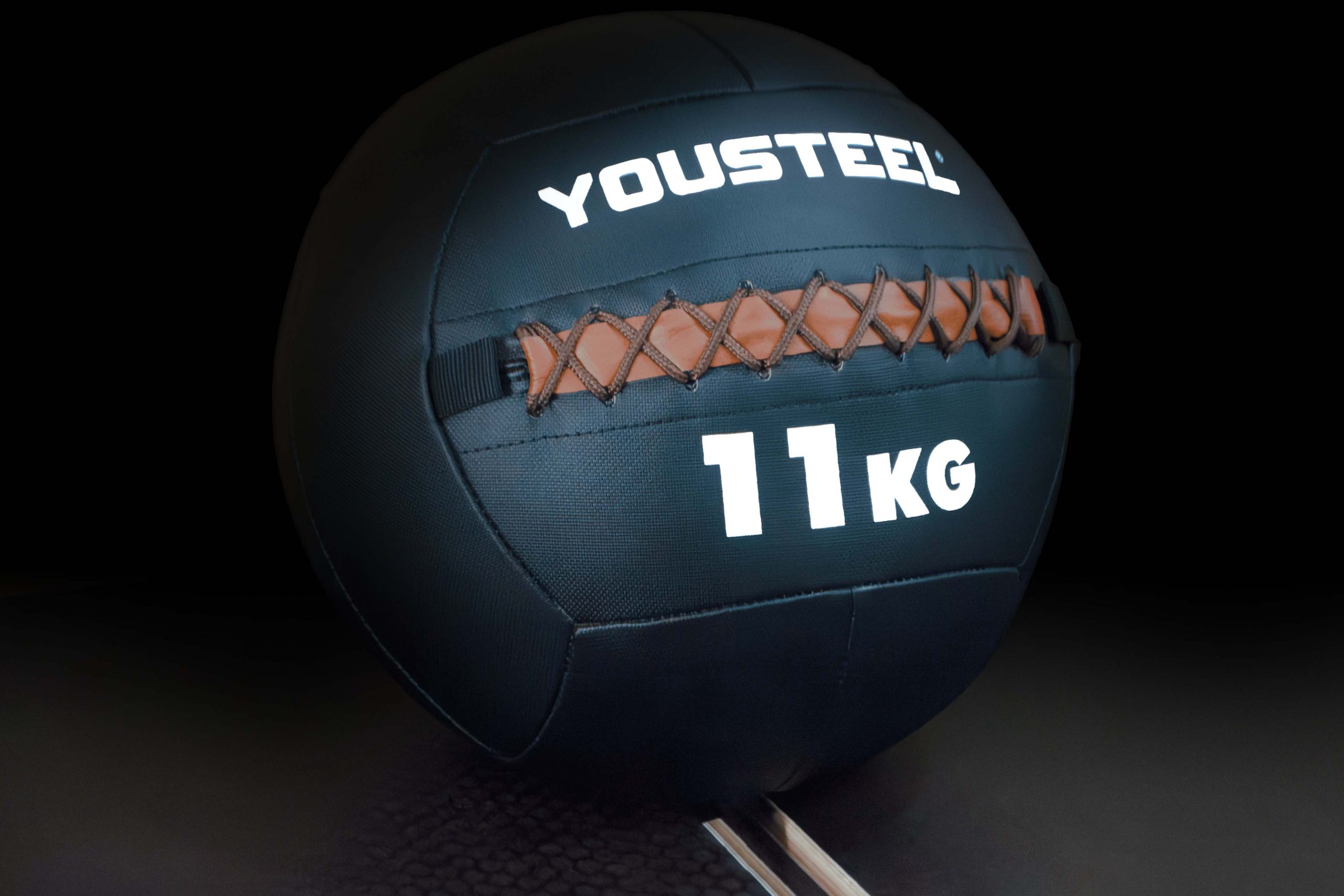 Медбол представляет собой утяжеленный мяч, диаметром 355мм и весом 11кг. Оболочка мяча выполнена из износостойкого ПВХ, которое обеспечивает оптимальное сцепления с ладонями занимающихся и предотвращает выскальзывание из рук, даже если вы вспотели. Для простоты ориентации каждый снаряд имеет цифровое обозначение веса и цветную вставку. Каждый шов прошивается нейлоновой нитью, что обеспечивает повышенную надёжность. Уникальность мячей в том, что мы используем внутри систему «скорлупы». Под оболочкой из ПВХ находится мягкий слой из вспененного полиуретана высокой плотности, который служит для предотвращения смещения центра тяжести, это происходит за счет концентрации тяжелых частиц набивки в самом центре ядра «скорлупы» мяча.