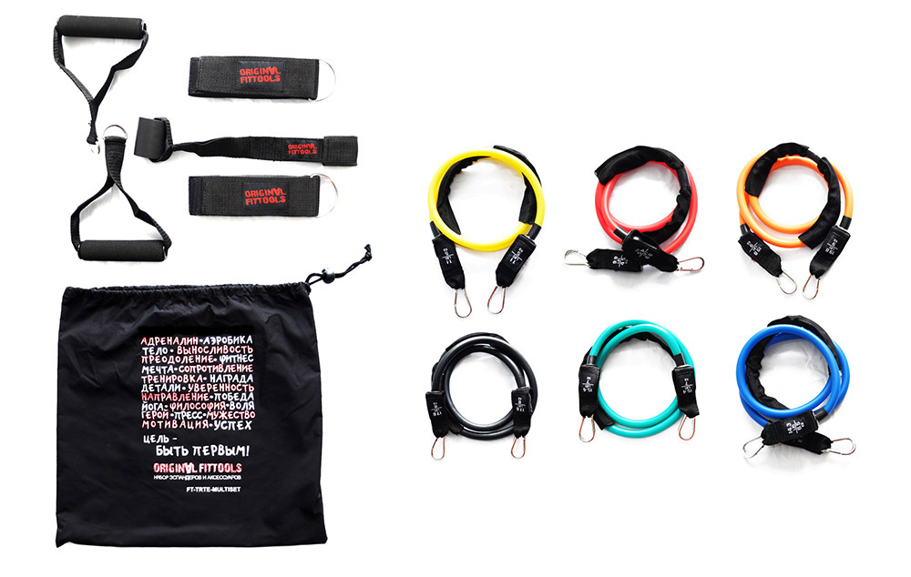 Набор эспандеров в мешке с логотипом: 6 трубчатых эспандеров: