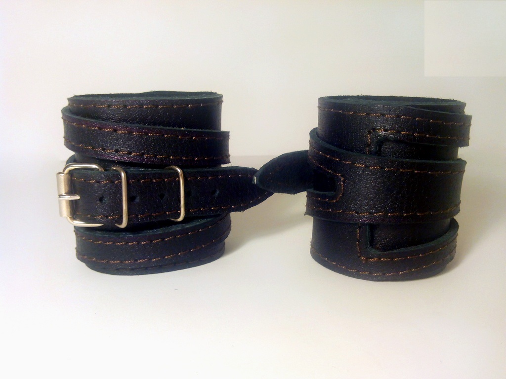 Классический вариант напульсников из натуральной кожи. Необходимо иметь небольшую сноровку для их одевания.