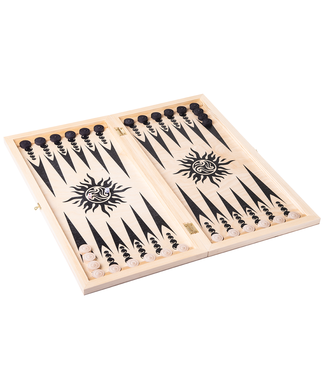 Комплектация: доска, шашки (15 «белых» и 15 «чёрных»), 2 игральных кубика (зара)