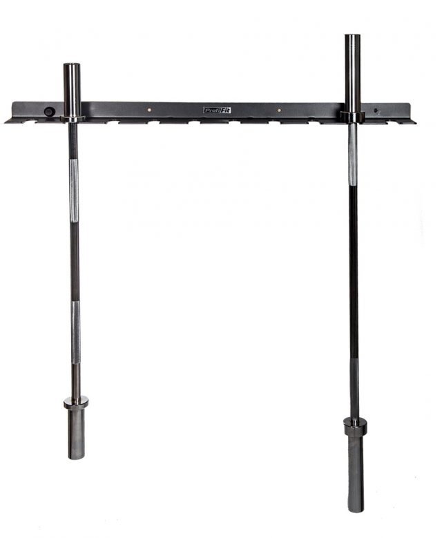 Настенный кронштейн PROFI-FIT, для 10 грифов, ВЕРТИКАЛЬНОЕ хранение. Кронштейн представляет из себя металлический уголок с вырезами, в которые навешиваются грифы для олимпийской штанги. Уголок крепится к стене горизонтально. По всей длине уголка ограничитель для предотвращения соскальзывания навешанных грифов. Толщина металла 5 мм. Отверстия вырезаны при помощи лазерной резки. Крепление к стене в 4-х местах.Размеры ШГВ 1210х120х60 ммЦвет: серый металликВес: 9 кг.Упаковка: 1 место.