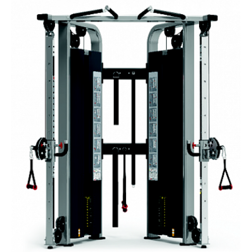 Тренажер имеет два тяговых блока, перемещаемых по вертикали. При использовании рукояток для тяг и приспособлений различной конфигурации возможно выполнение большого арсенала упражнений.