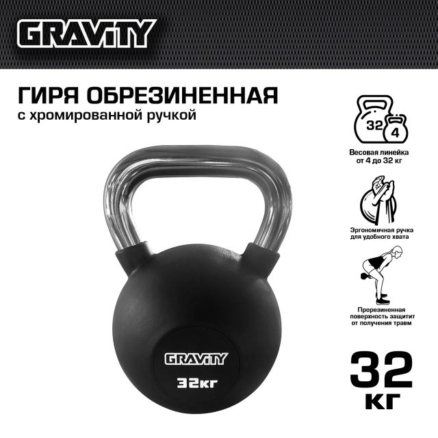 Это один из самых популярных видов свободных весов как для домашних тренировок, так и для занятий в фитнес-клубе, который сделает тренировочный процесс разнообразнее и эффективнее. Обрезиненные гири Gravity представлены во множестве вариантов веса, включая нестандартные – от 4 до 32 килограмм.
