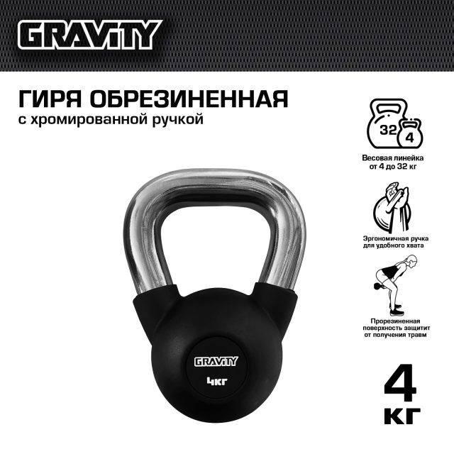Обрезиненная гиря Gravity, черная, 4 кг