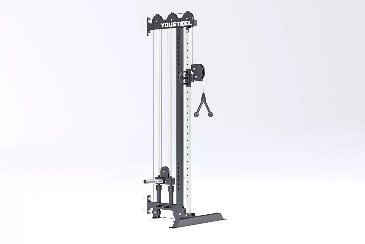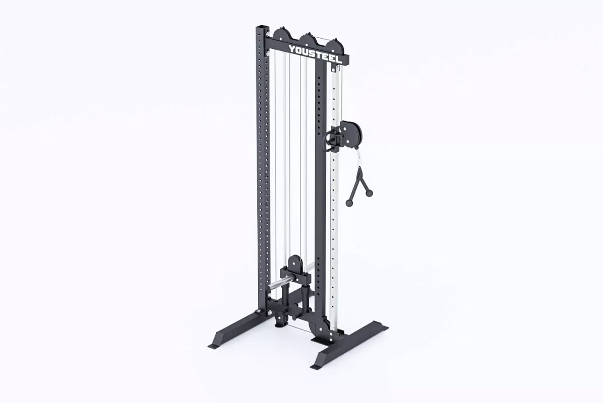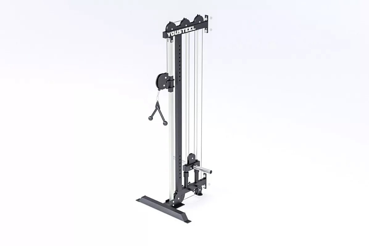 Мощная функциональная кабельная система с прочным механизмом. В тренажере предусмотрена удобная система увеличения веса с помощью встроенного кронштейна, на который с лёгкостью надеваются любые диски со стандартной втулкой 51мм. Диски не входят в комплект поставки и приобретаются отдельно, найти их можно по ССЫЛКЕ. Длина каждого кронштейна под диски составляет 275мм.
