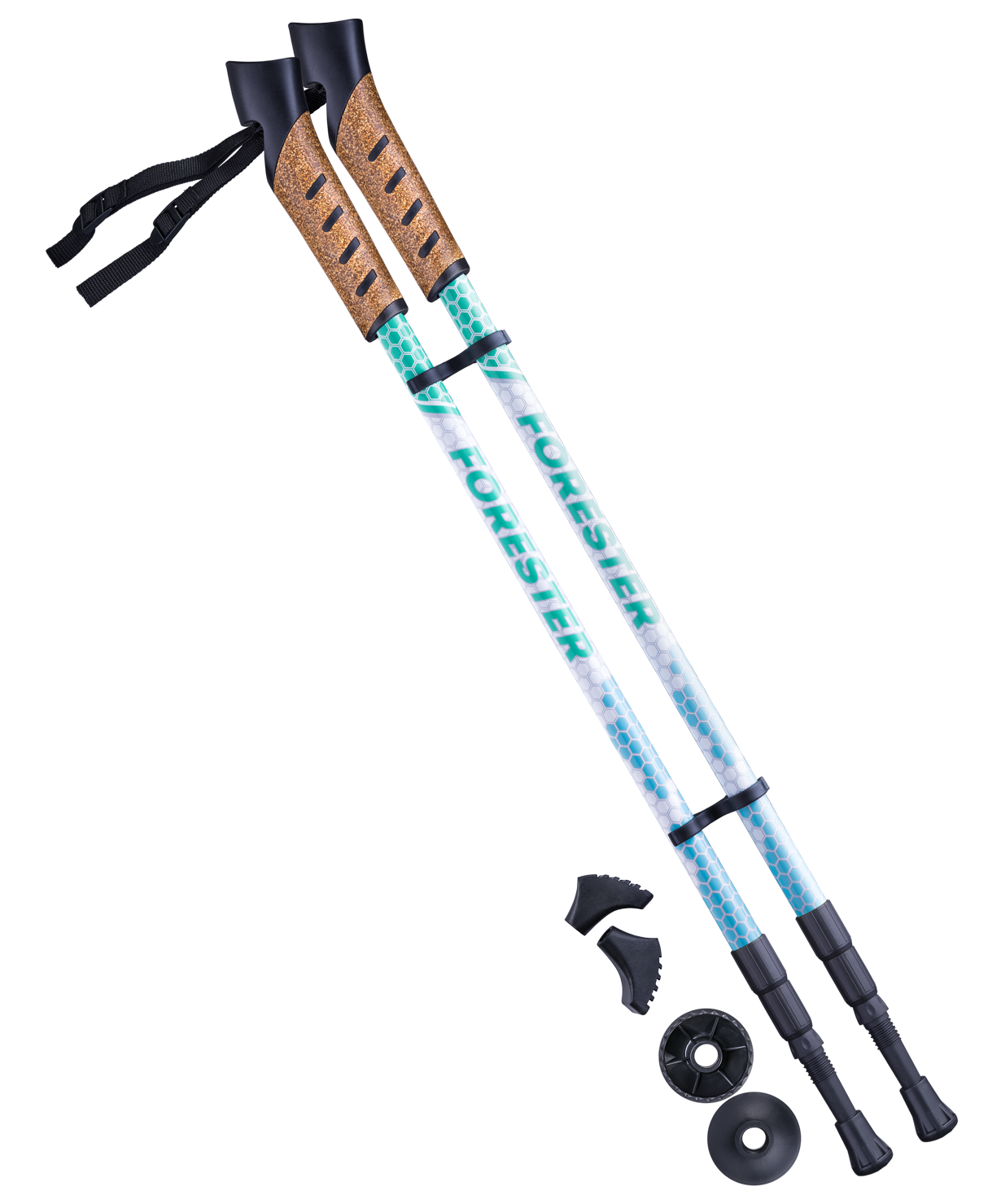 Трехсекционная модель палок для скандинавской ходьбы Forester выполнена из легкого и прочного алюминия, оснащена пробковыми ручками с удобными регулирующимися ремешками.