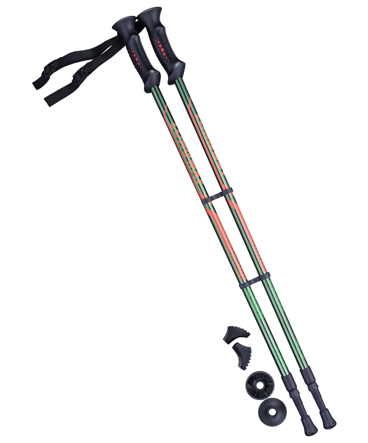 Палки для скандинавской ходьбы Longway, 77-135 см, 2-секционные, тёмно-зеленый/оранжевый Berger