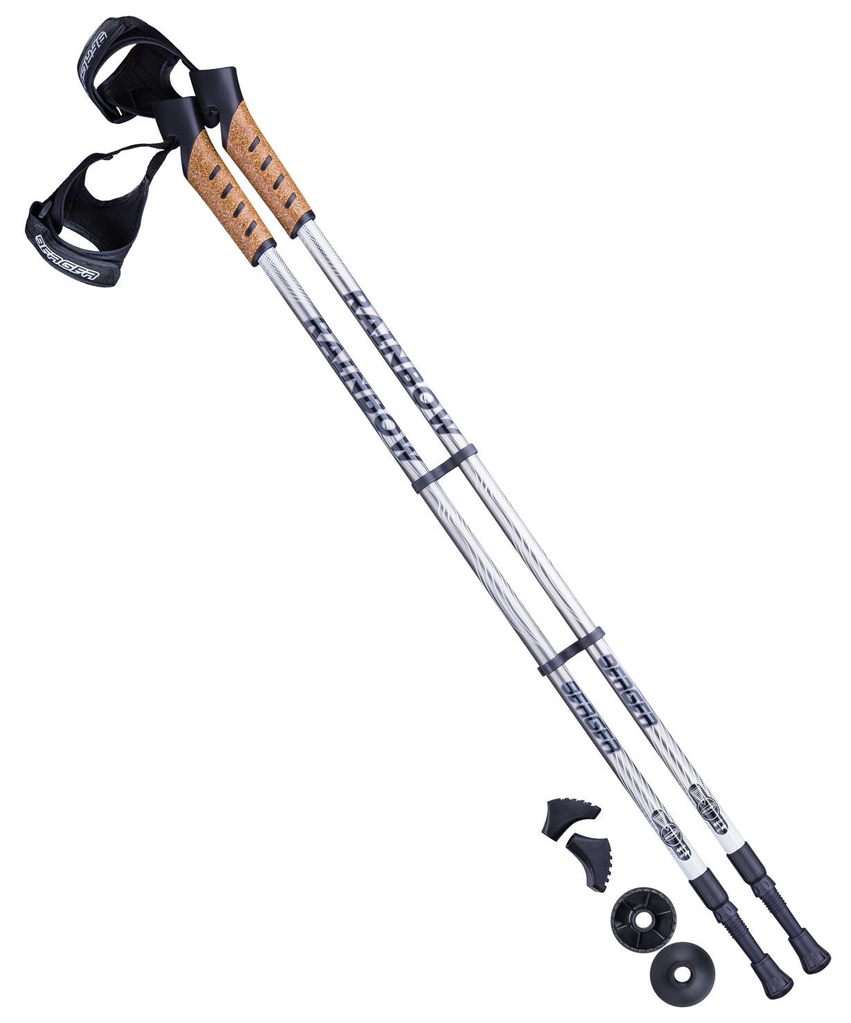 Двухсекционные палки для скандинавской ходьбы Rainbow предназначены для ходьбы по асфальту, песчаному грунту и снегу. Благодаря высококачественным материалам палки обеспечивают комфорт и безопасность тренировок. Пробковые ручки оснащены съёмным темляком, который плотно фиксирует запястье.