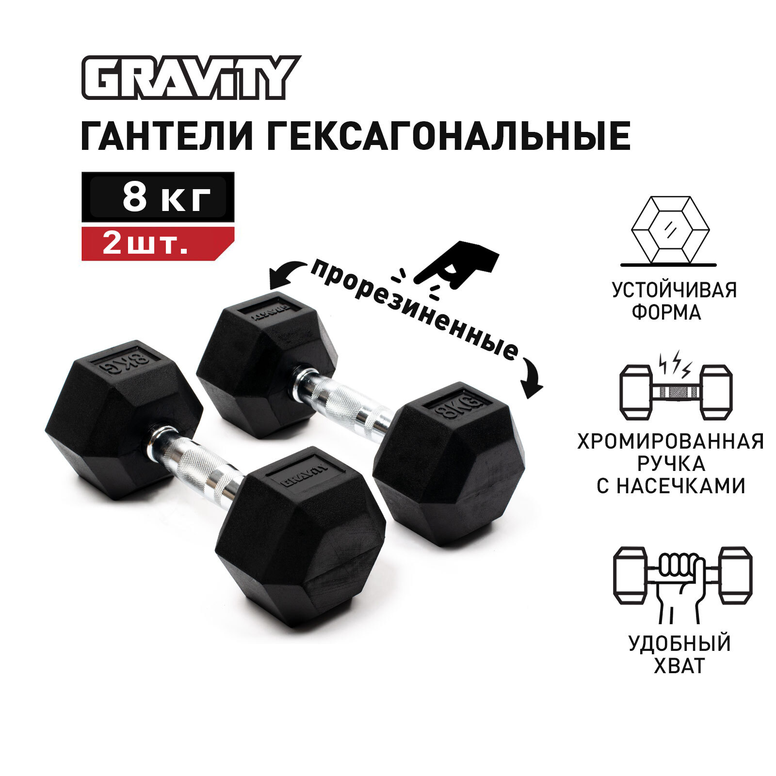 Пара гексагональных гантелей Gravity, 8 кг (общий вес 16 кг), цвет черный