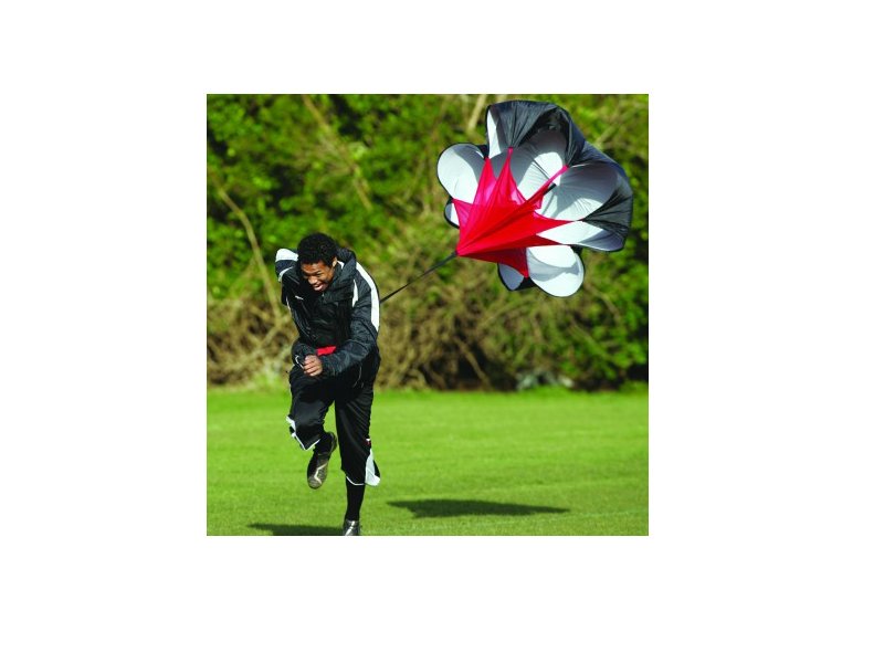 При беговой тренировке при скорости свыше 7 км./ч. парашют раскрывается позади спортсмена и создает сопротивление 25 кг. Такой способ увеличивает эффективность тренировки, аэробную выносливость спортсмена, снижает нагрузку на суставы ног и позвоночник.