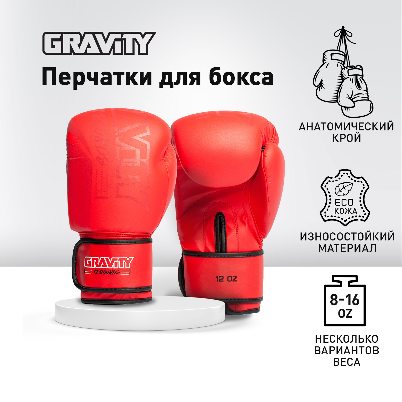 Красные боксерские перчатки FORCE от бренда Gravity изготовлены из сверхпрочной искусственной кожи, устойчивой к постоянным ударам. Внутренний уплотнитель – инновационный двухслойный пенный материал, который обеспечивает хорошее поглощение удара и защиту запястий и кистей. Конструкция перчаток обеспечивает безопасное фиксированное положение большого пальца, предотвращая травмы и смещения.
