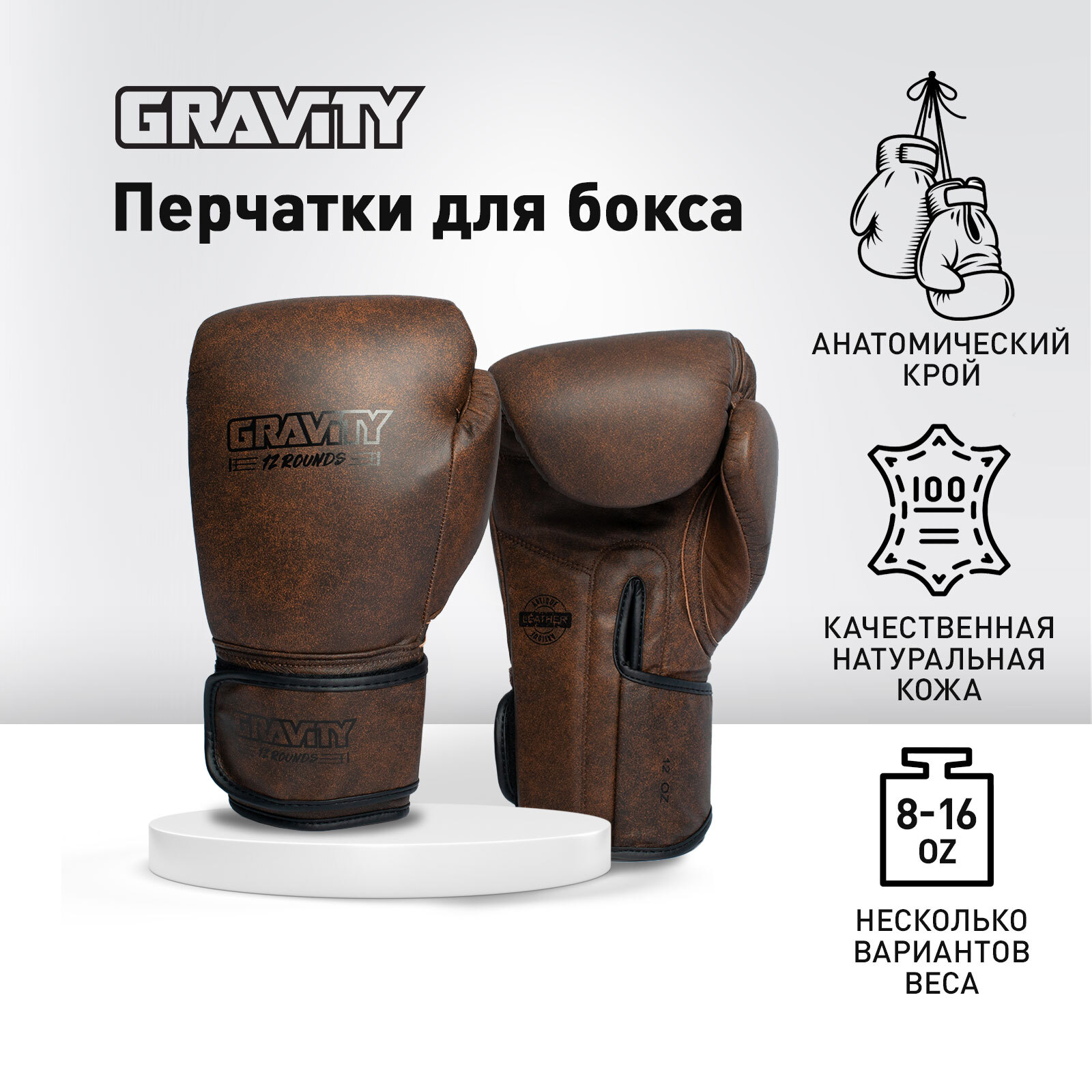 Перчатки для бокса Gravity, антикварная кожа, коричневые, 16 унций