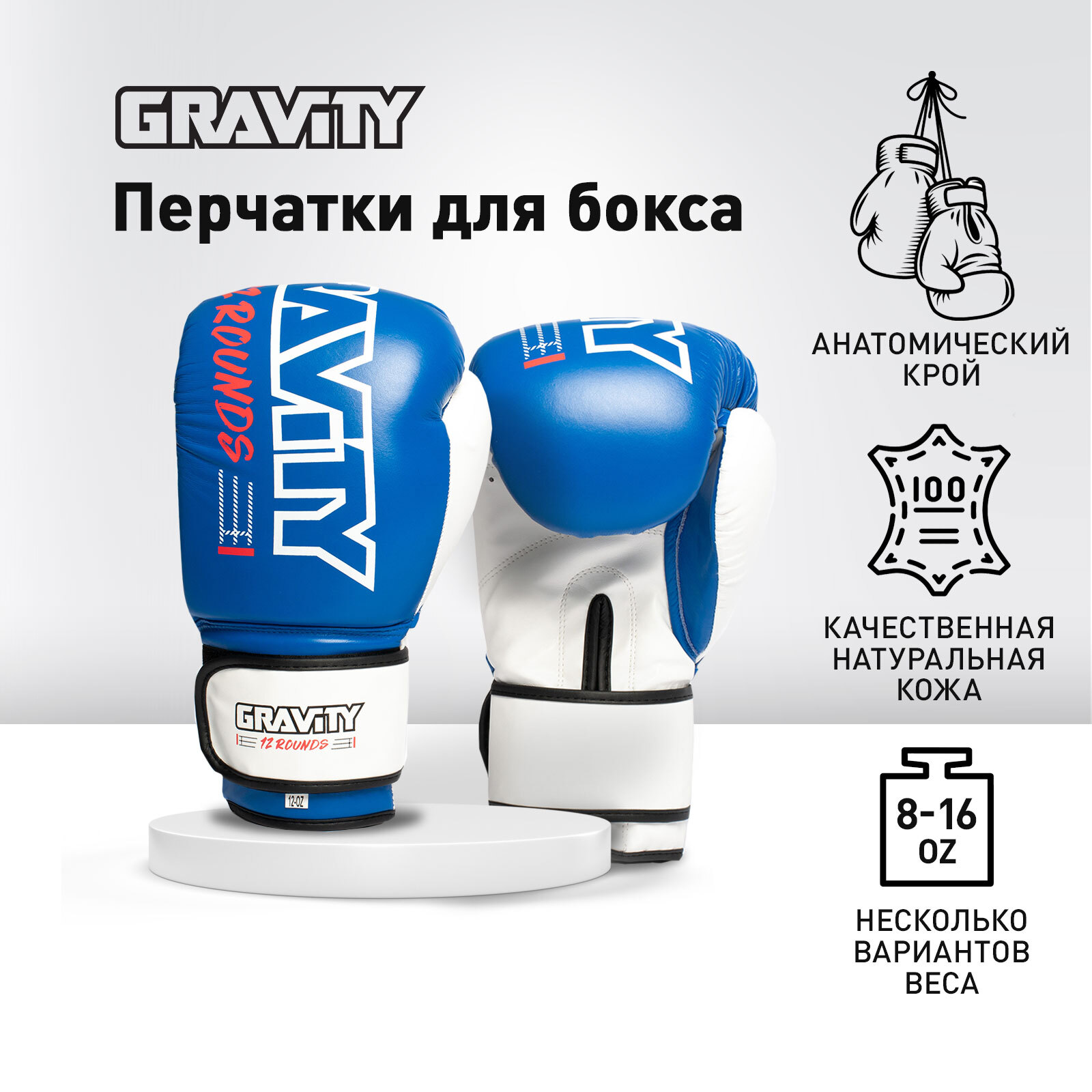 Перчатки для бокса Gravity, кожа, синие, 12 унций