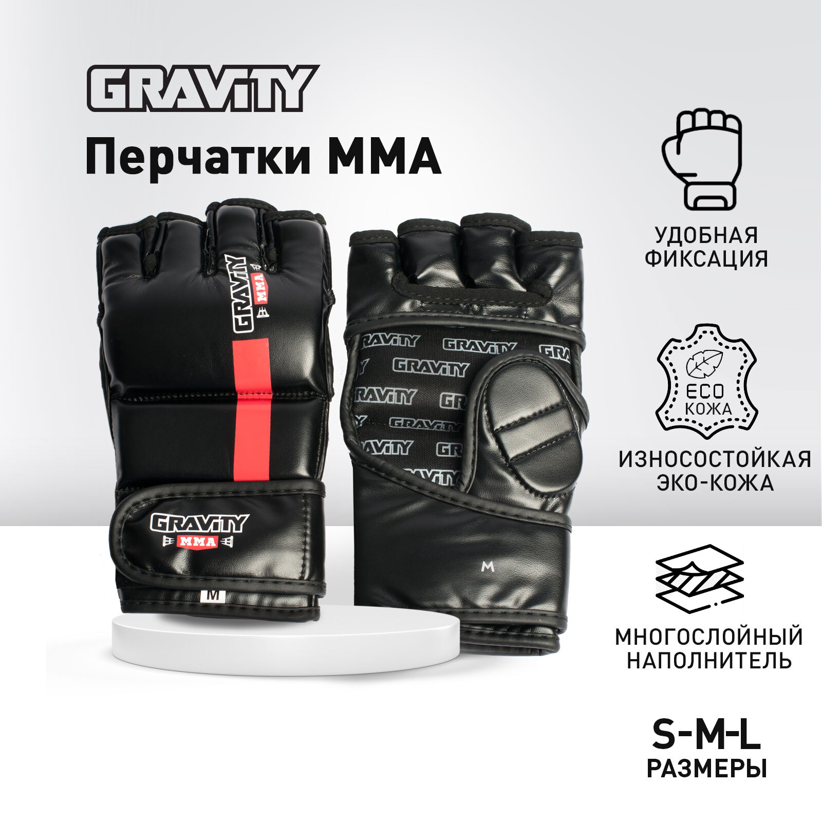 Перчатки ММА Gravity, искусственная кожа, черные