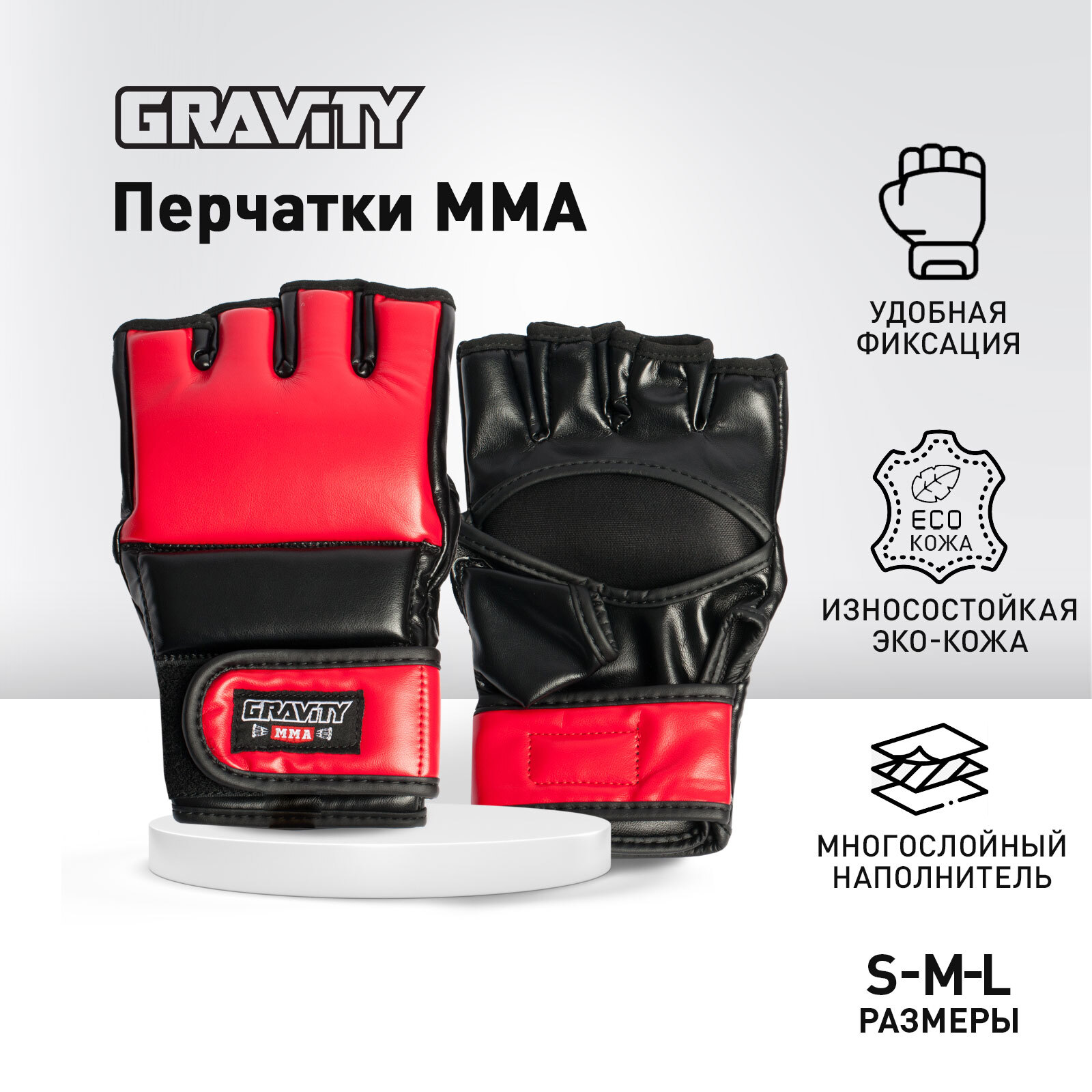 Перчатки ММА Gravity, искусственная кожа, красные