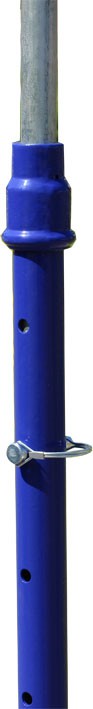 Выполнена из 2-х напольных стоек, перекладины, 4-х растяжек ø-4 мм и 4-х закладных элементов (с прячущимся крючком для крепления растяжек к полу).
