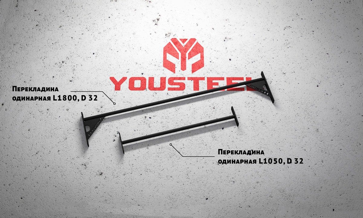 Одинарная перекладина длиной 1050мм. Диаметр перекладины 32мм. Отверстия 17мм.