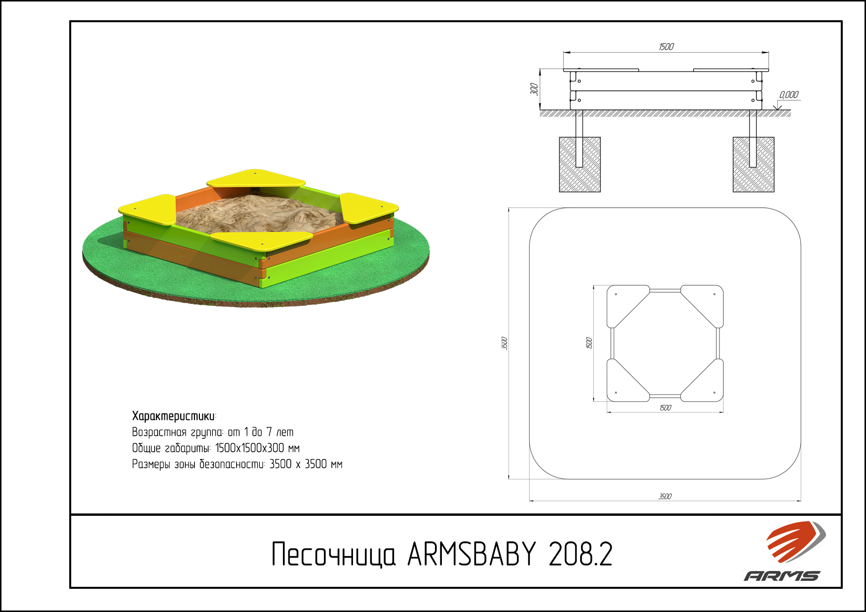 Песочница представляет собой устойчивую конструкцию, обеспечивающую ребенку комфортные условия для игры с песком на свежем воздухе.