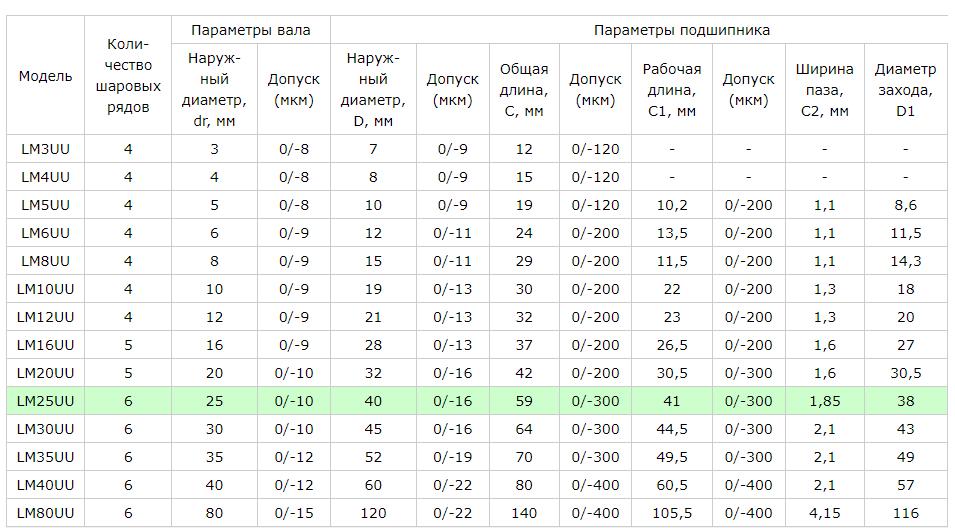 Подшипник линейный LM25UU (GS348) работает с валами диаметром 25 мм.
