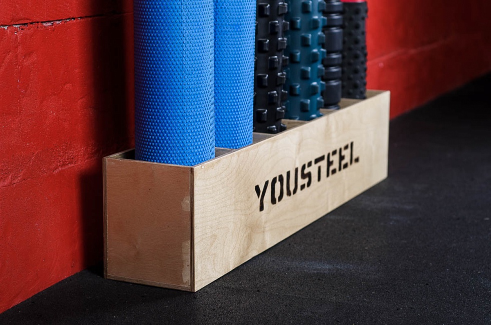 Часто роллеры разбросаны по залу, так как без внятного указателя клиент не может определить место снаряда, и оставляет роллер там, где закончил работу с ним. Эта подставка поможет удобно разместить роллеры различных размеров, а также будет гармонично смотреться в любом интерьере.