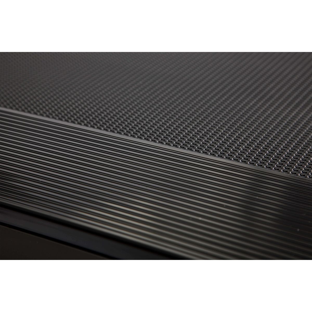 Беговое полотно из антистатического фактурного нескользящего материала толщиной 2,5 мм имеет оптимальную длину и ширину беговой области 1450 мм и 520 мм.