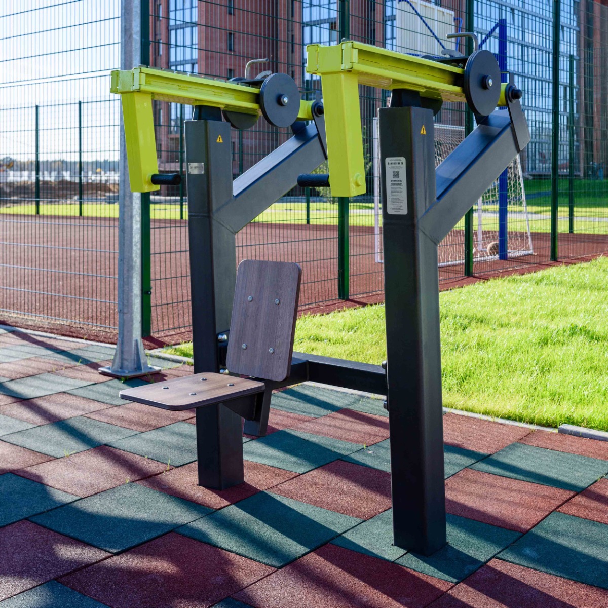Уличный тренажер Жим вверх с переменной нагрузкой ZAVODSPORTA* предназначен для установки на уличных спортивных площадках с учетом интенсивной эксплуатации в разных климатических условиях.