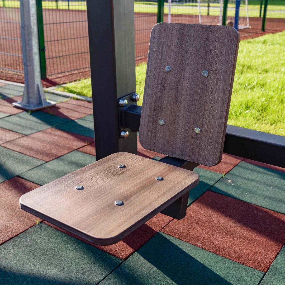 Сиденье и скамья тренажера выполнена из высокопрочного ударостойкого HPL-пластика толщиной 12 мм.