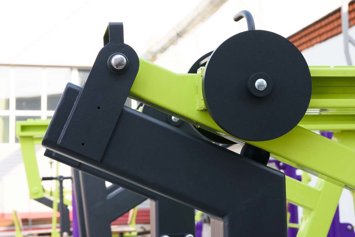 Надёжность и прочность разъёмных соединений конструктивных элементов тренажёра обеспечиваются за счёт использования высококачественного оцинкованного крепежа, выступающие части которого закрыты металлическими защитными колпачками.