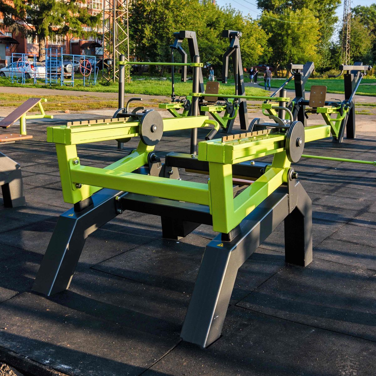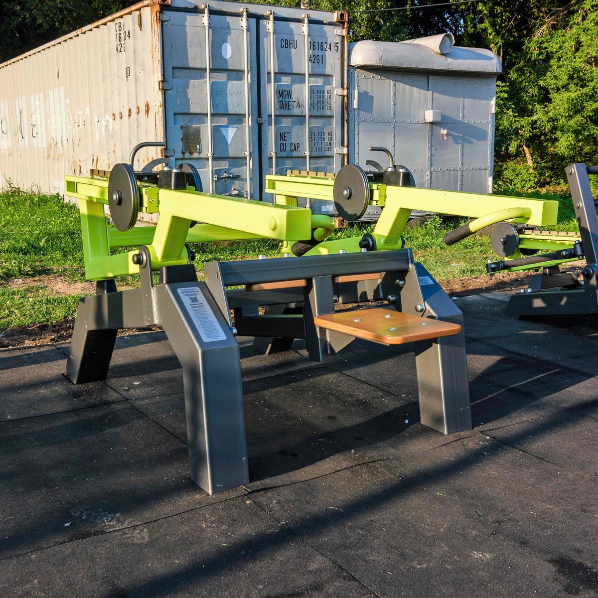 Оборудование состоит из закладных и тренажера. Закладные монтируются в грунт и заливаются бетоном. Тренажер крепится к закладным за счет фланцевого соединения и отсыпается песчано-гравийной смесью до уровня площадки (не менее 150 мм). Фланцевое крепление позволяет надёжно смонтировать тренажер и беспрепятственно демонтировать при необходимости ремонта. Монтажные схемы прилагаются к комплекту поставки.