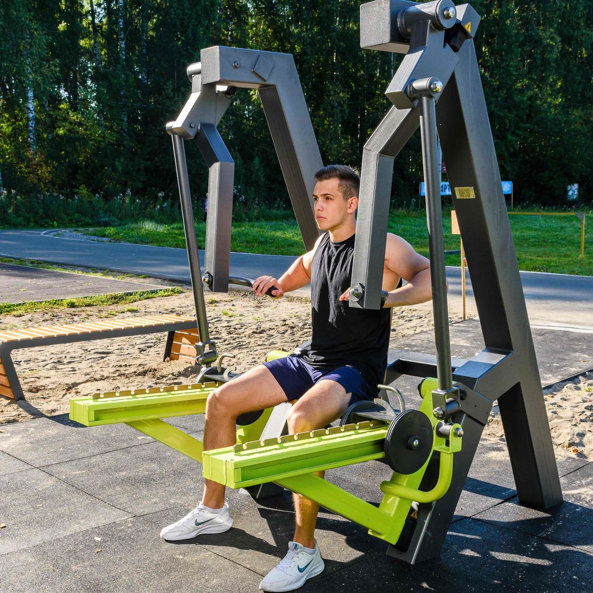 Уличный тренажер Жим сидя с переменной нагрузкой ZAVODSPORTA* предназначен для установки на уличных спортивных площадках с учетом интенсивной эксплуатации в разных климатических условиях.