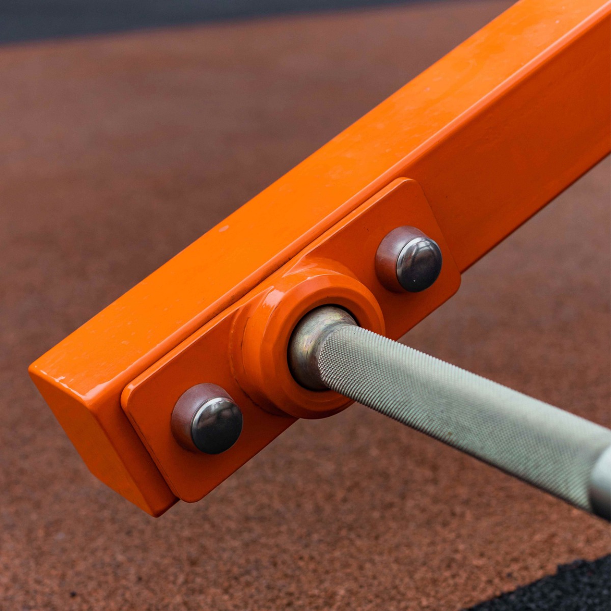 Штанга выполнена из стальной трубы диаметром 33 мм с толщиной стенки 3,2 мм. На места хвата нанесена мягкая накатка для комфортного надежного хвата.