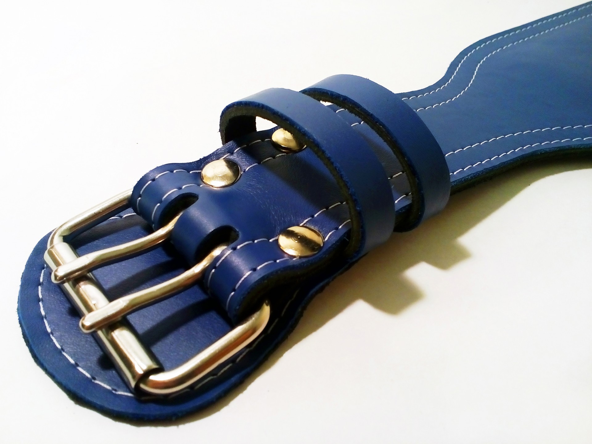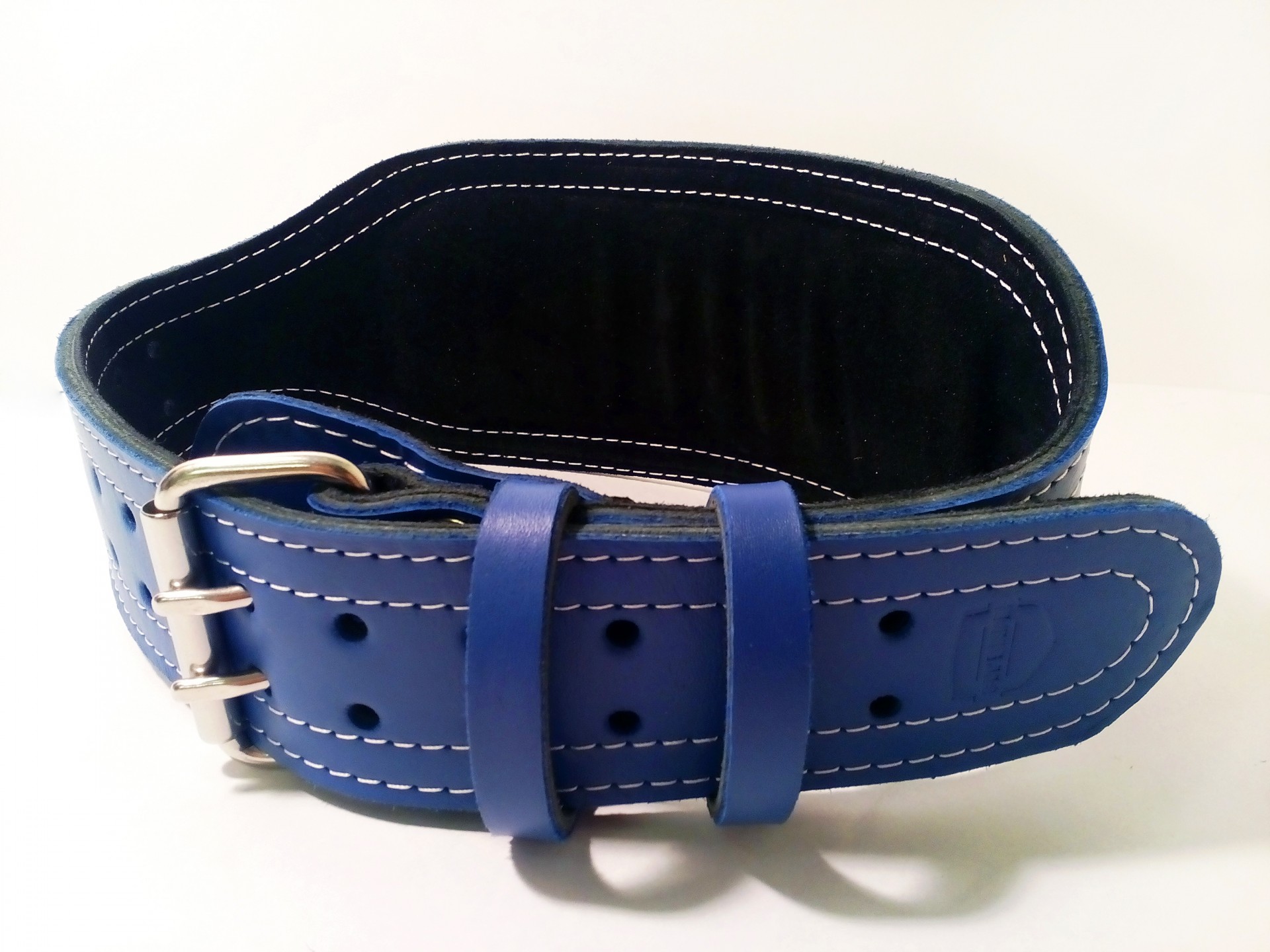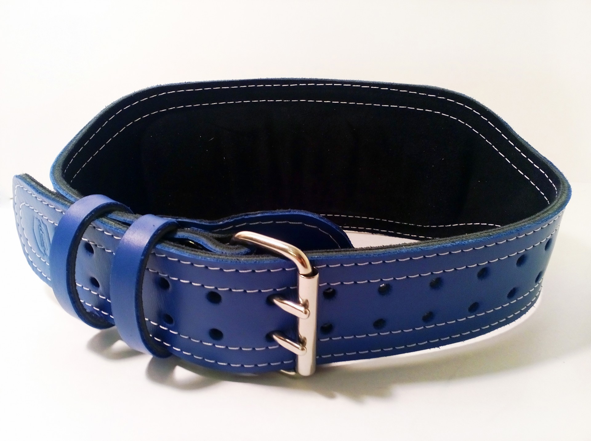 Данный атлетический пояс отлично подойдет начинающим спортсменам и профессионалам. Изготовлен из трех слоев высококачественной натуральной кожи. Достаточно мягок в отличие от аналогов, сделанных из ПВХ, прессованного картона и других дешевых материалов с коротким сроком службы. Высота спинки 12 сантиметров, передняя часть &ndash 6. Язычок под пряжкой предохраняет от возможного дискомфорта при сильном затягивании ремня. Застежка выполнена из сплава нержавеющей стали, что обеспечивает ей первозданный внешний вид на протяжении всего периода использования изделия и внушительный запас прочности Модель имеет среднюю жесткость, при необходимости по Вашему запросу может быть добавлен четвертый слой. Об этом необходимо указать в комментариях при заказе. Мы использовали сырье и комплектующие высшего качества, чтобы атлетический пояс служил верой и правдой годами! Отличительная особенность аксессуара: яркий синий цвет с белыми нитками.